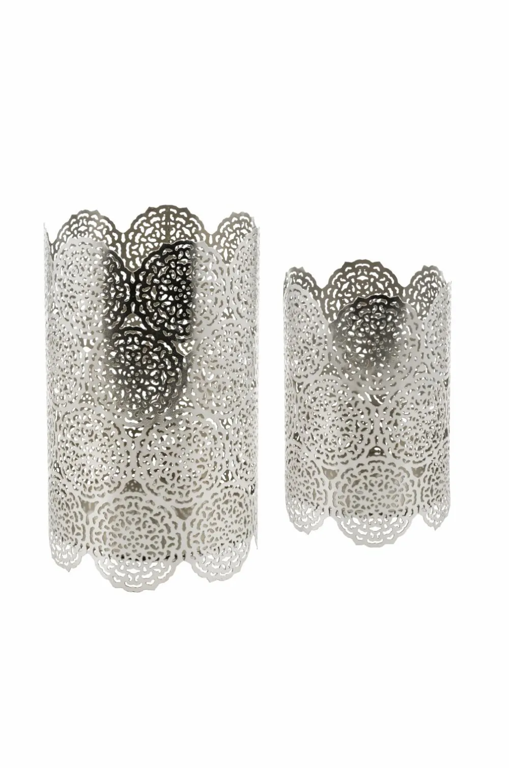 Sæt med 2 lanterner. Højde 15 cm og 20 cm. Aftørres med en fugtig klud.