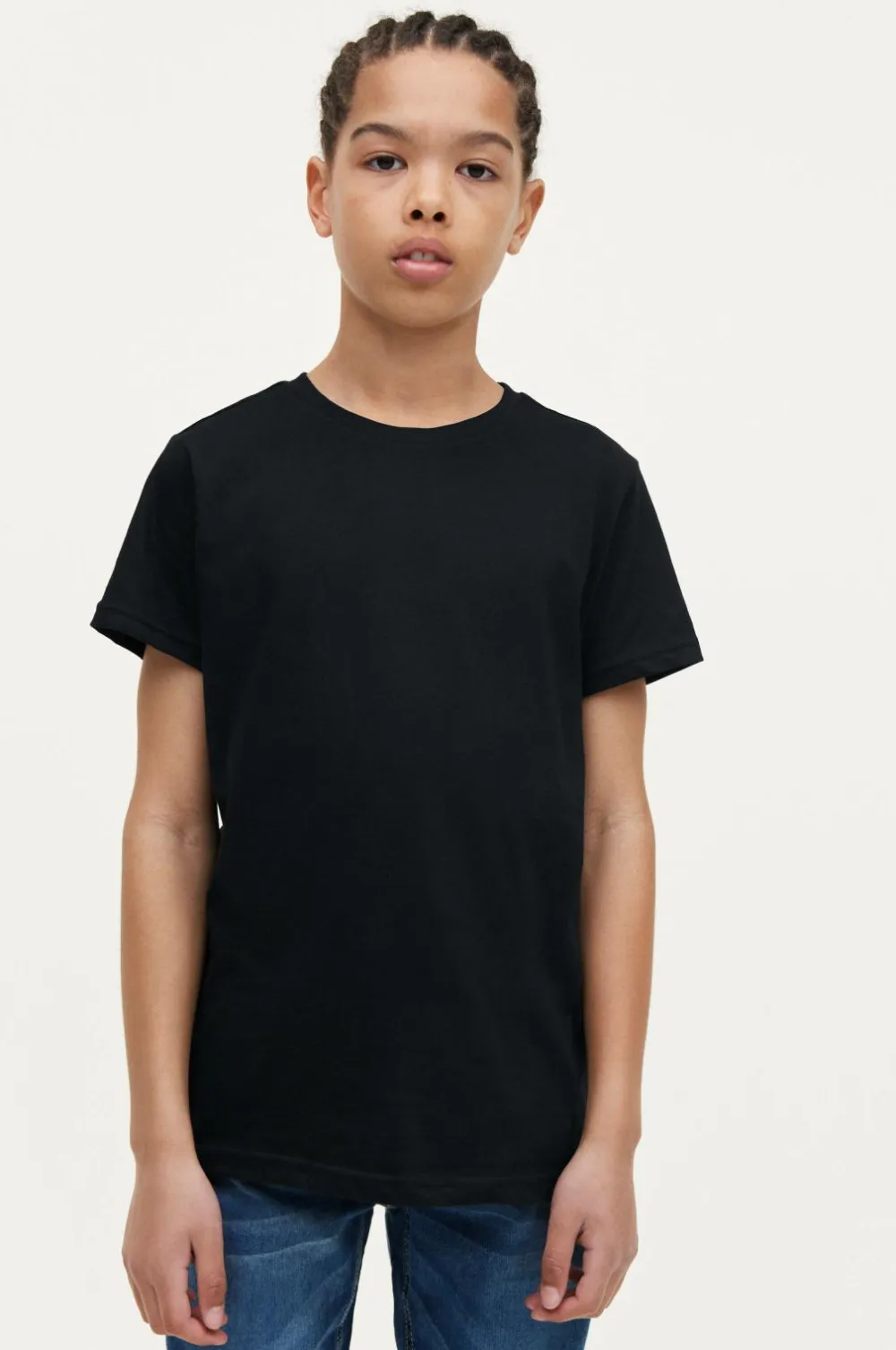 T-shirt af bomuld i 3-pak. Rund halsudskæring med ribkant.