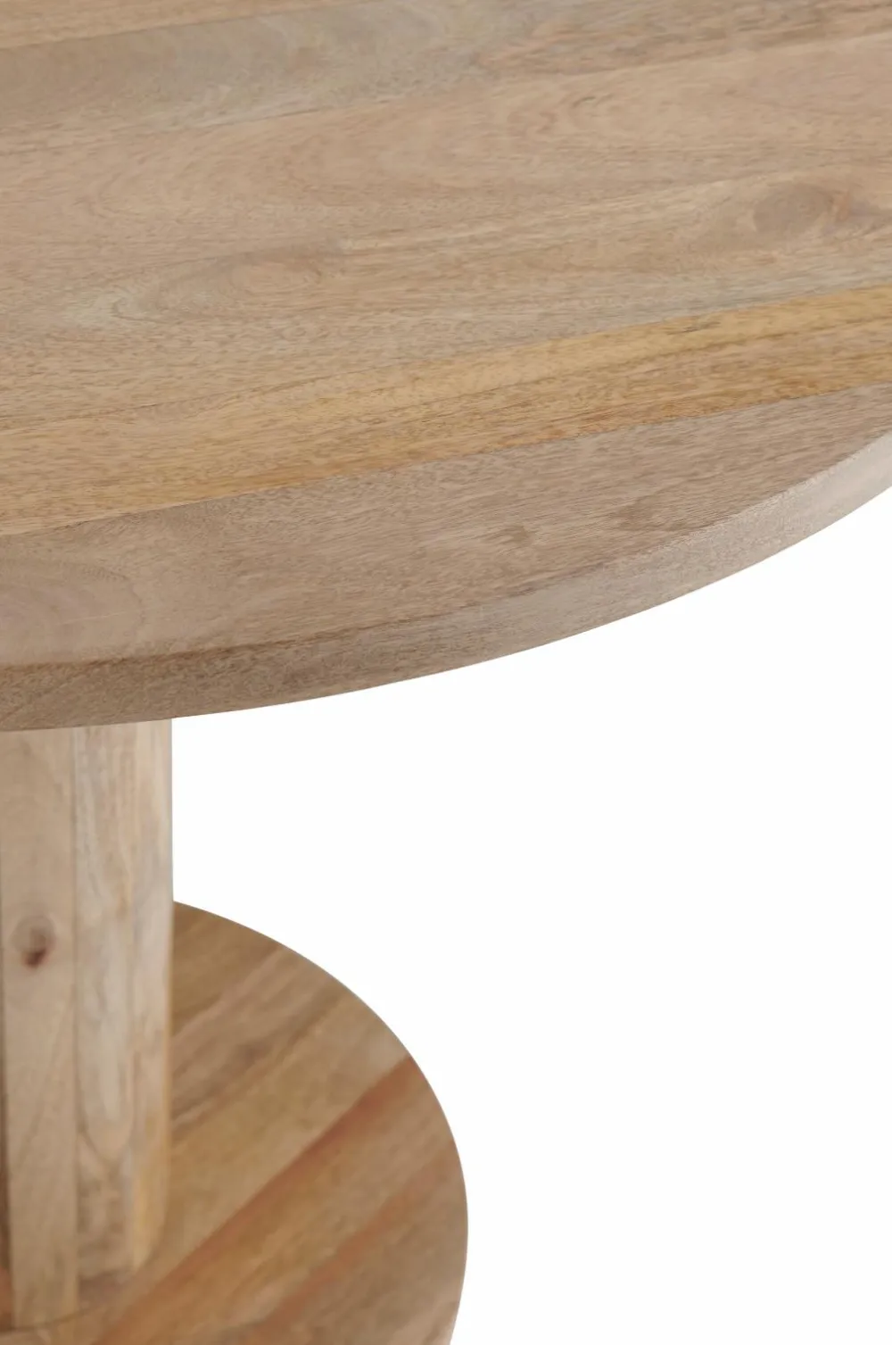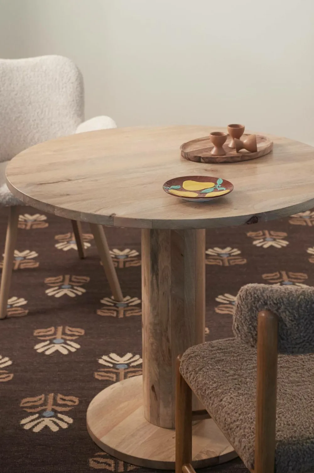 Spisebord i mangotræ, der er nemt at placere, med en stabiliserende metalkerne.