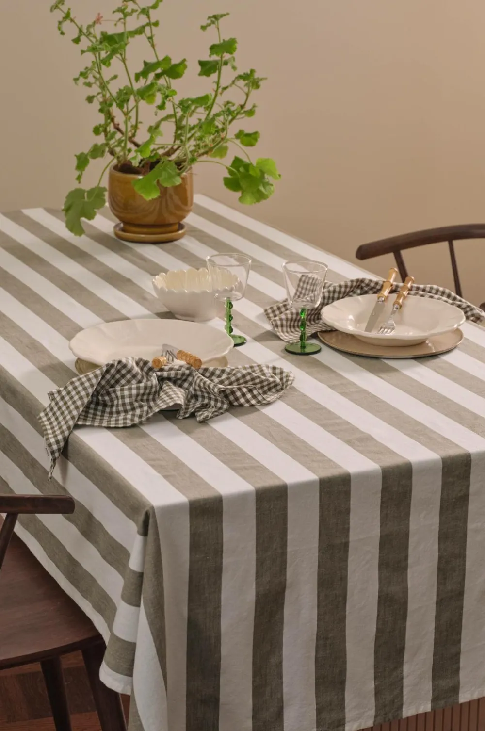 • Dug i bomuld med garnfarvede striber
