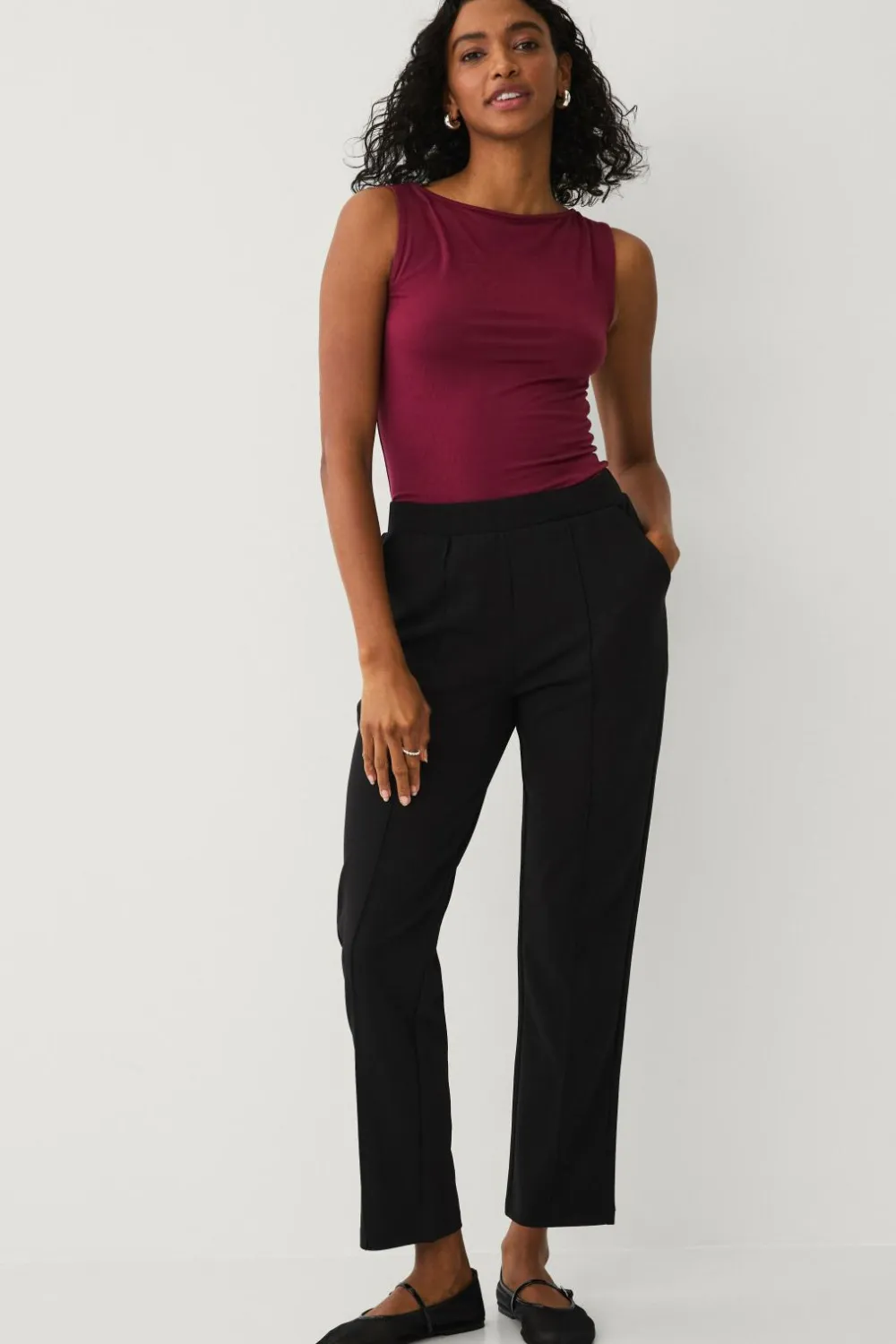 • Elastiske bukser med indsnævrende ben