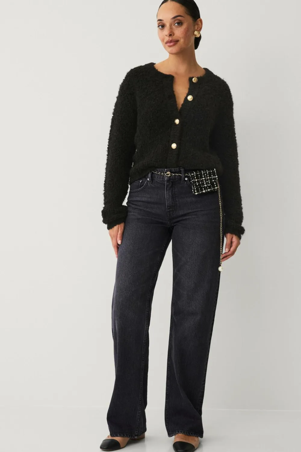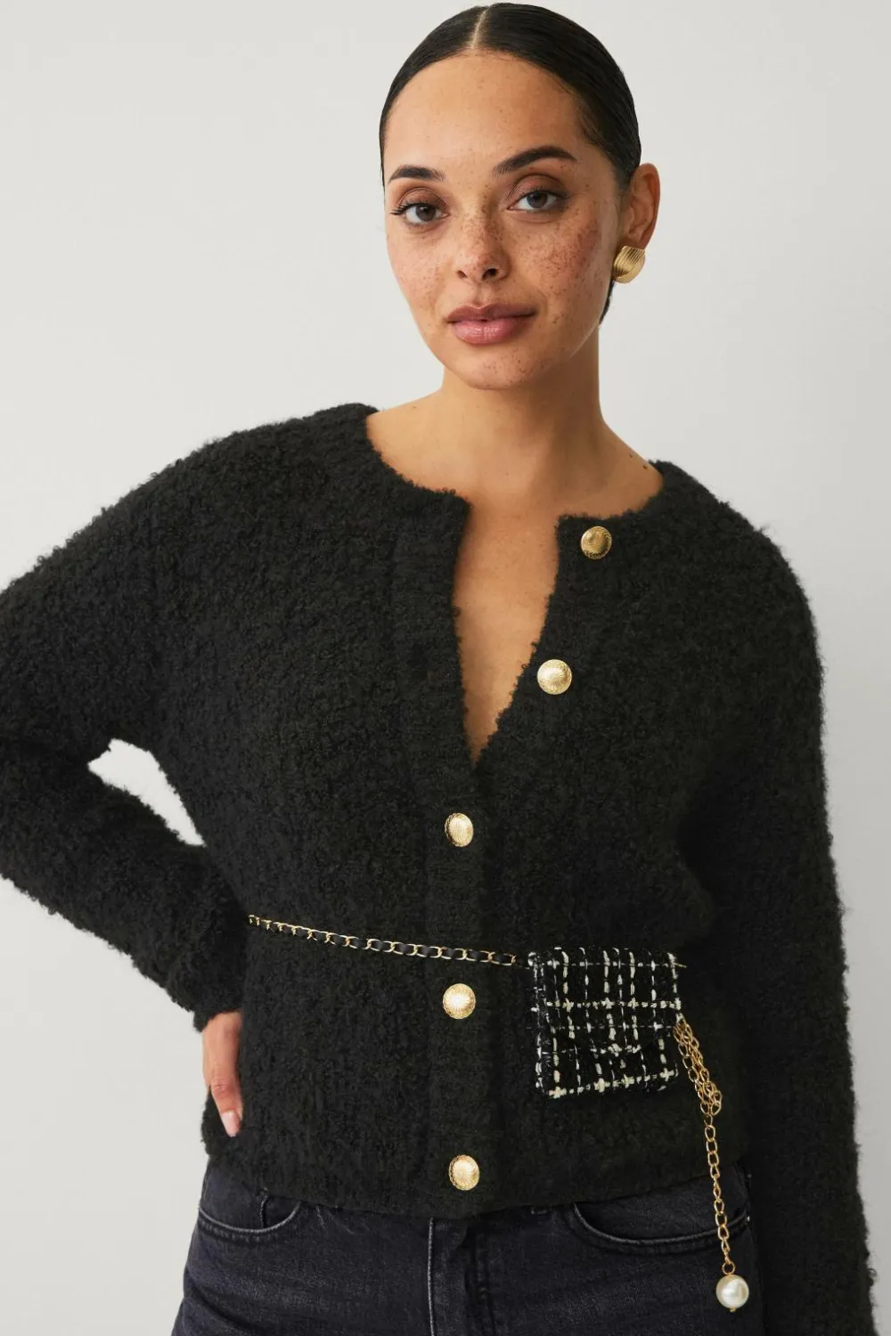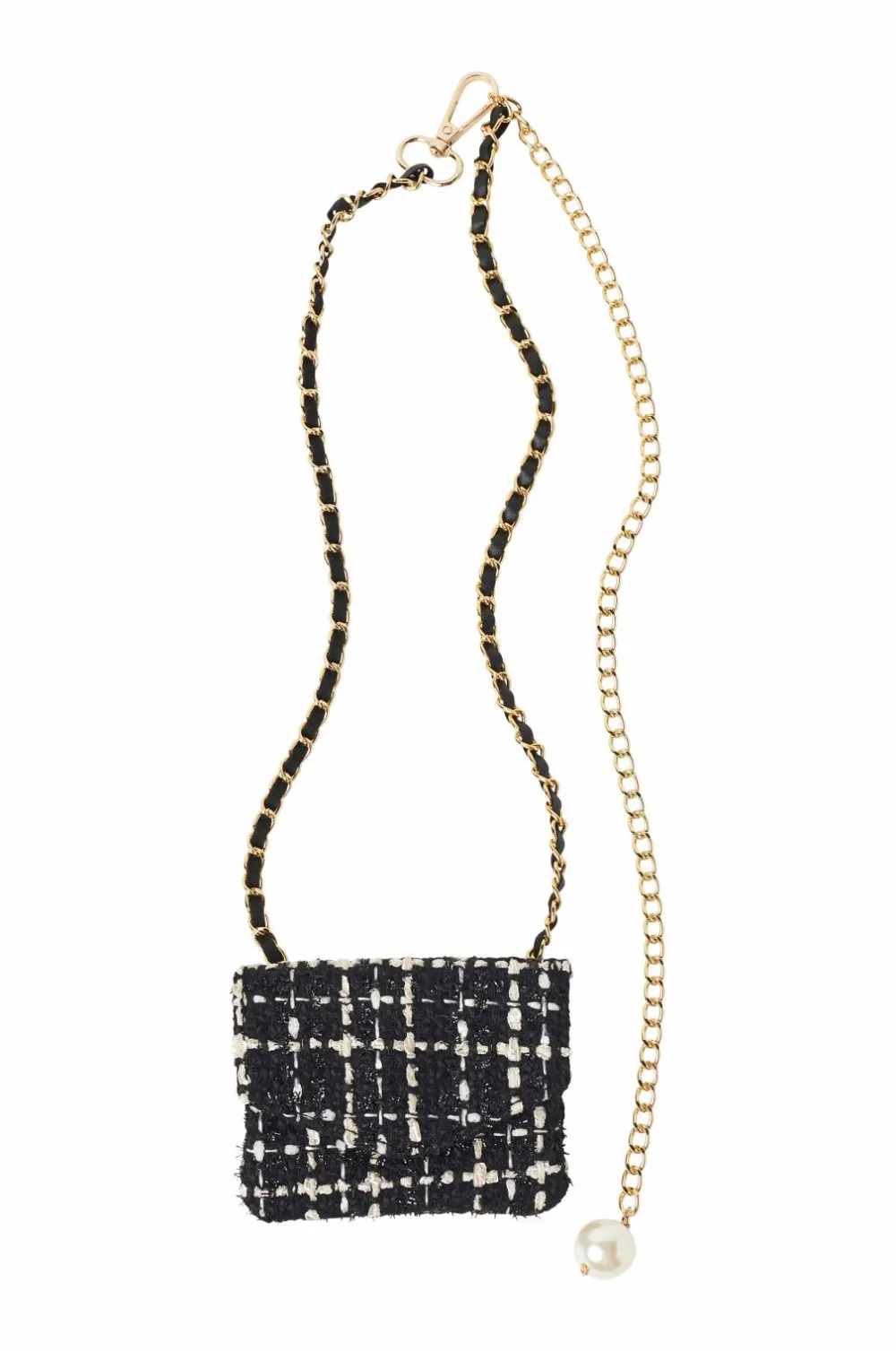 • Guldfarvet kæde med spændelukning og stor perle til sidst