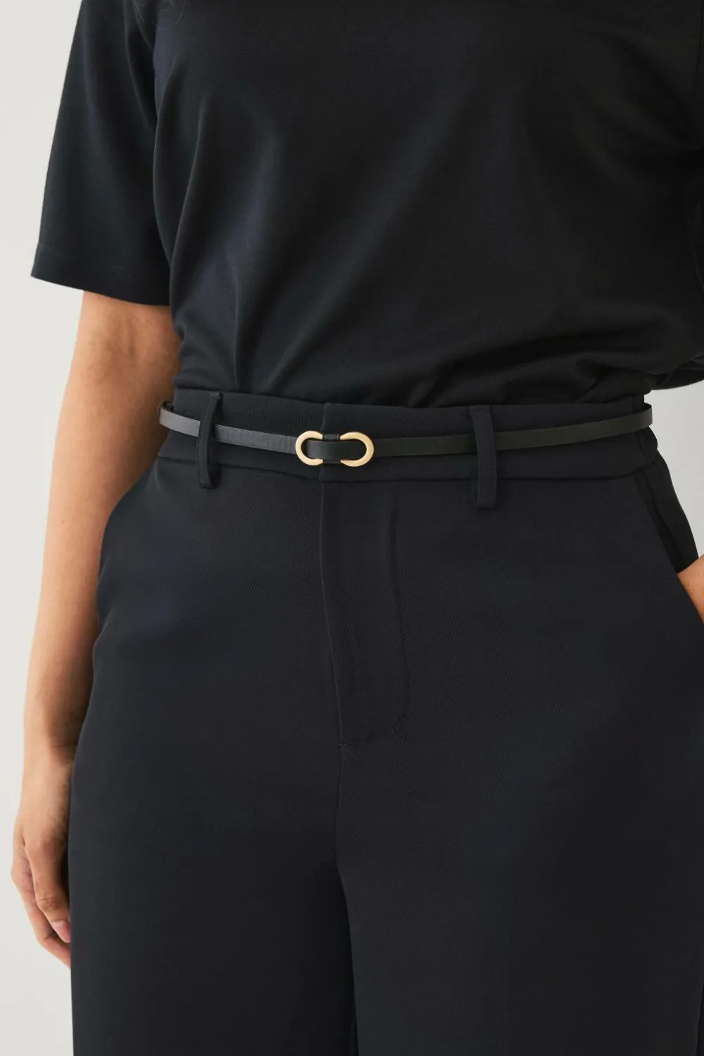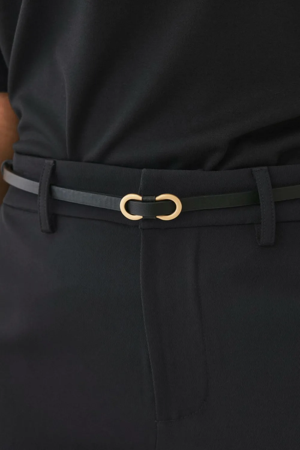 • Tyndt, justérbart bælte med sløjfeformet, guldfarvet, dekorativt spænde