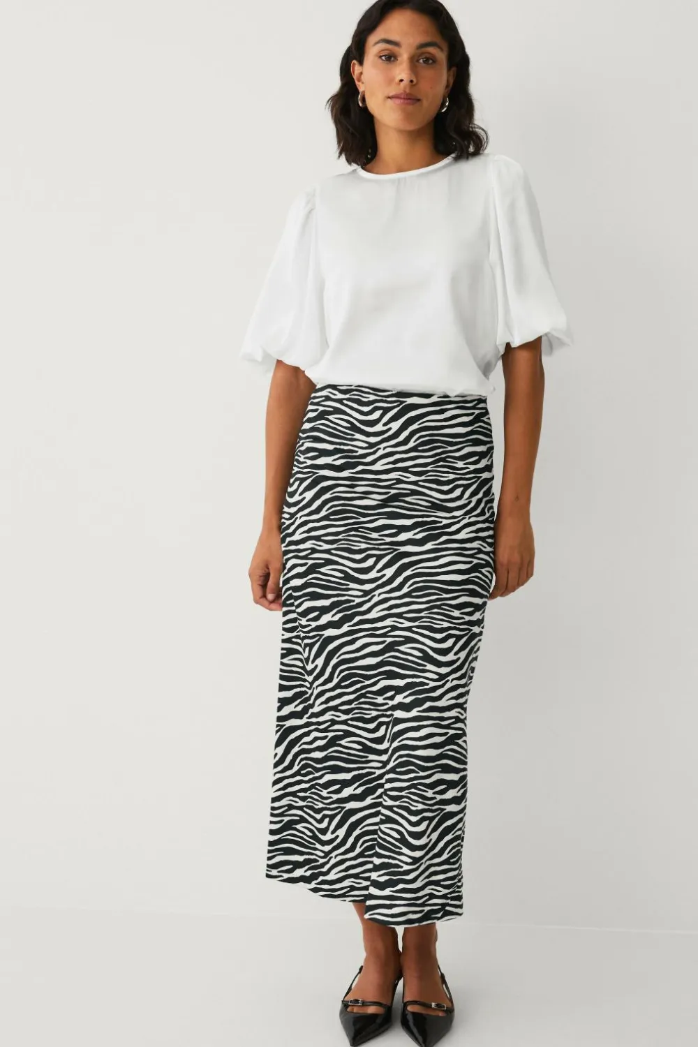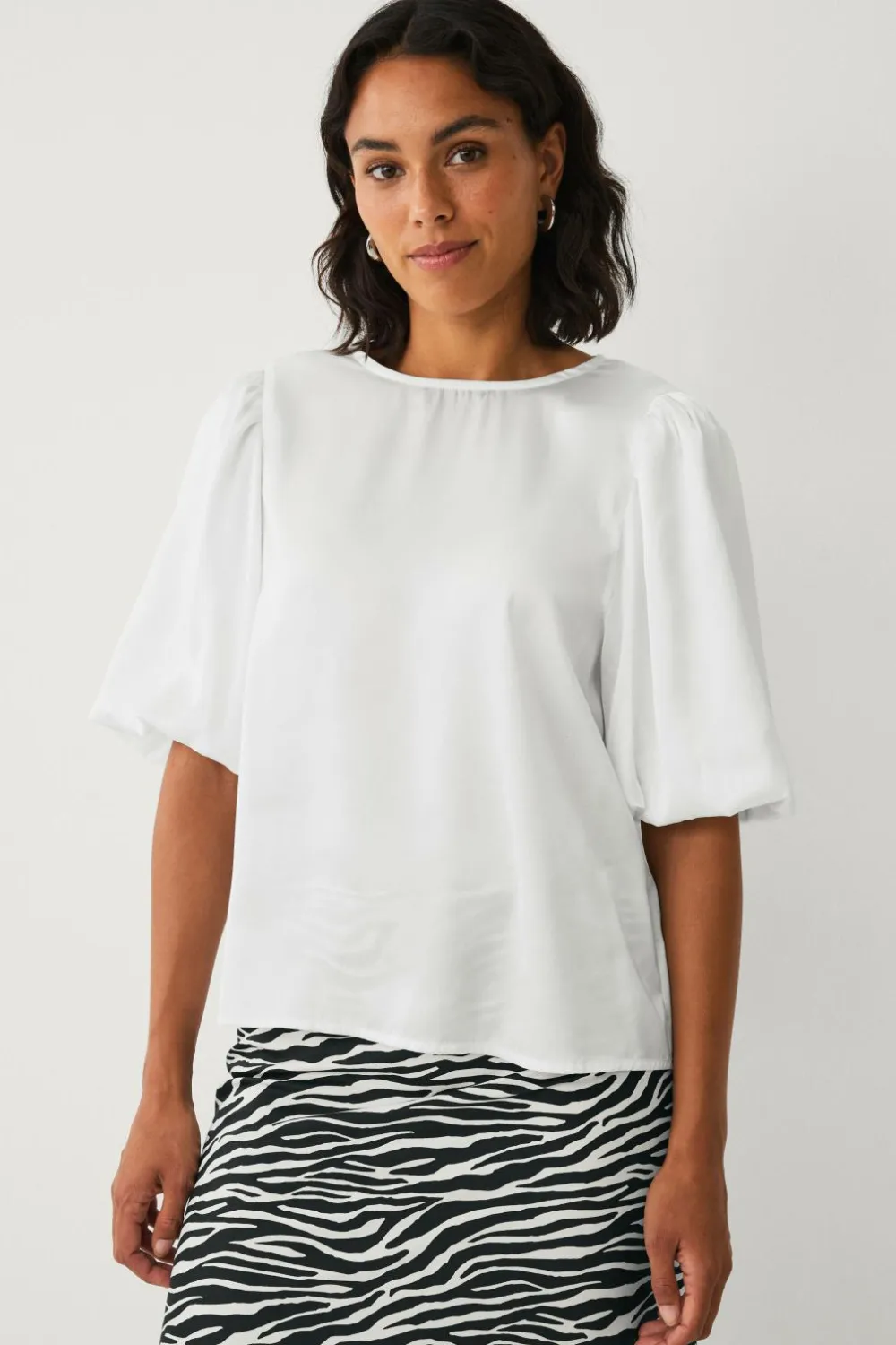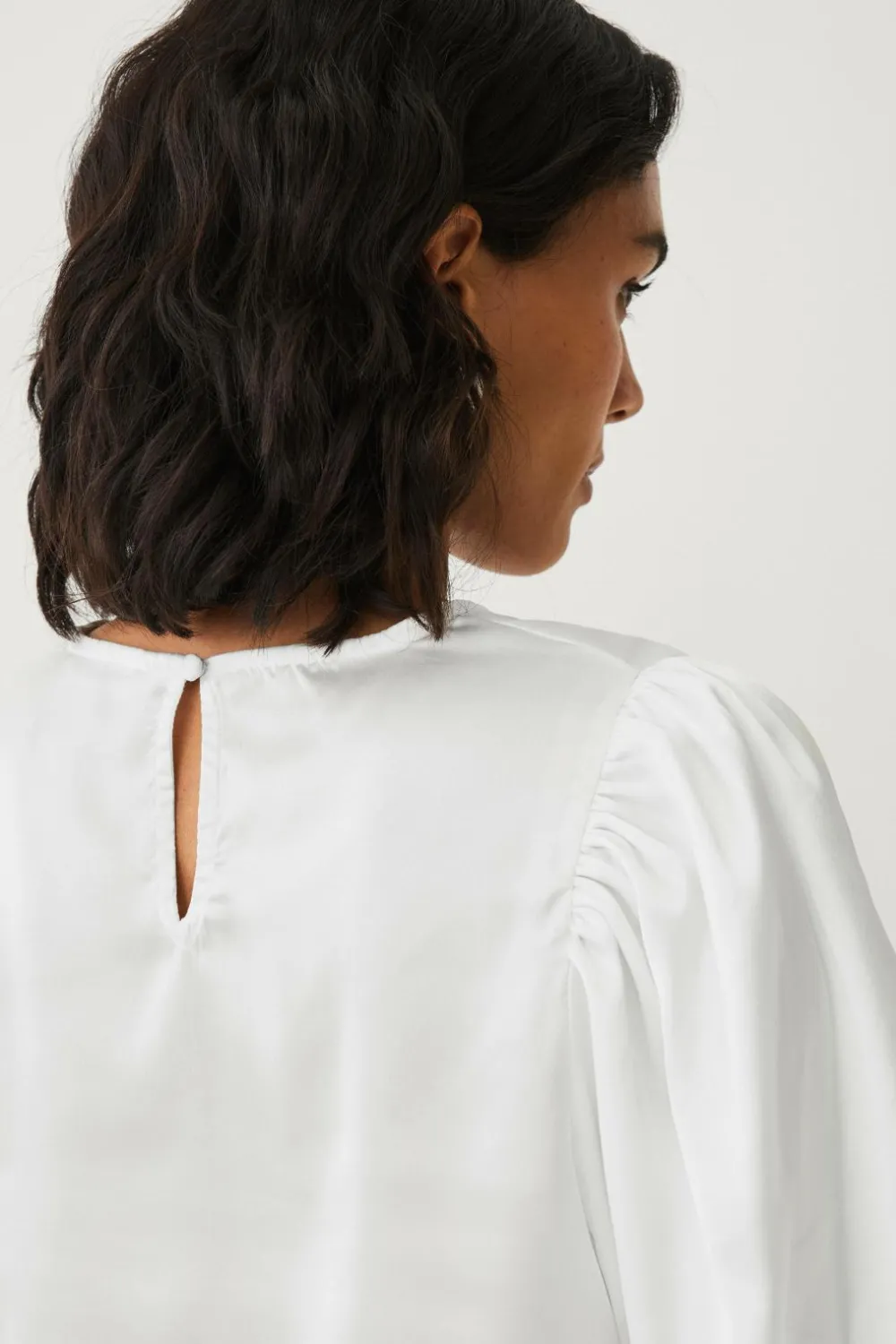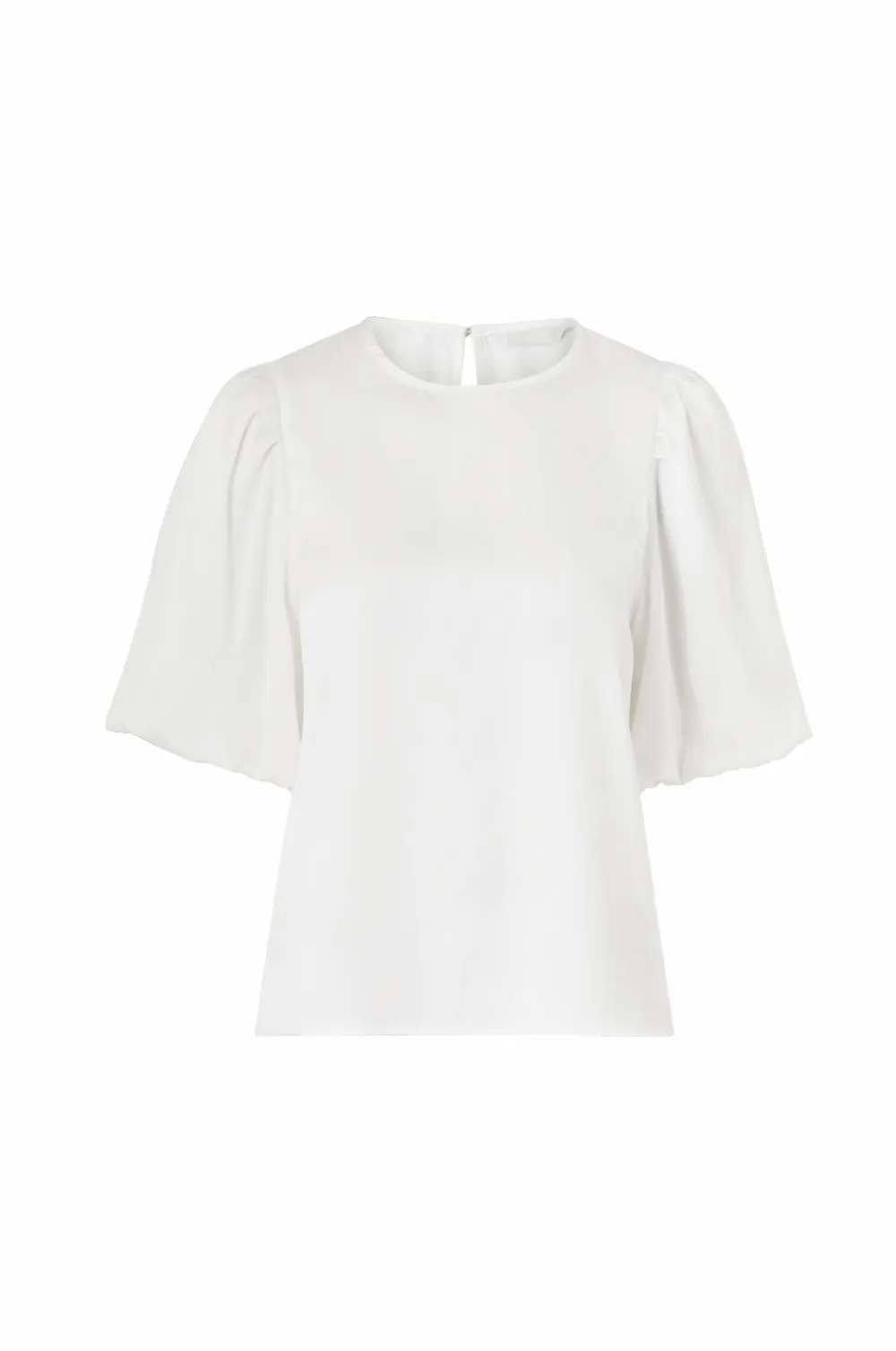• Satinbluse med korte ballonærmer