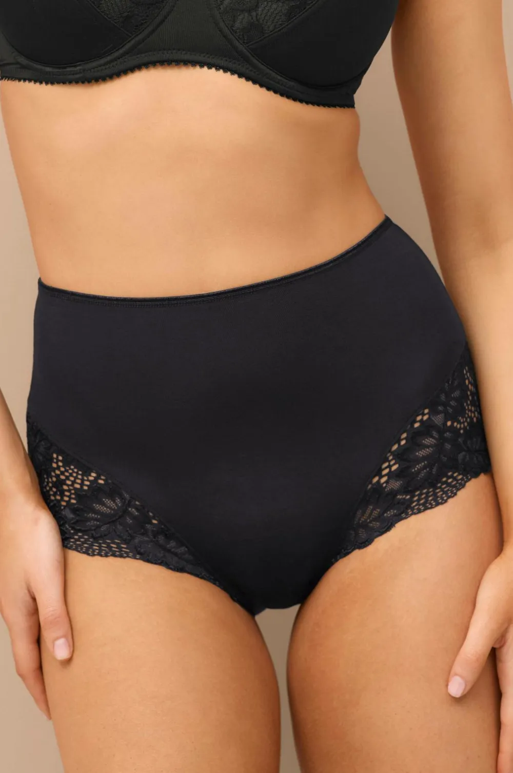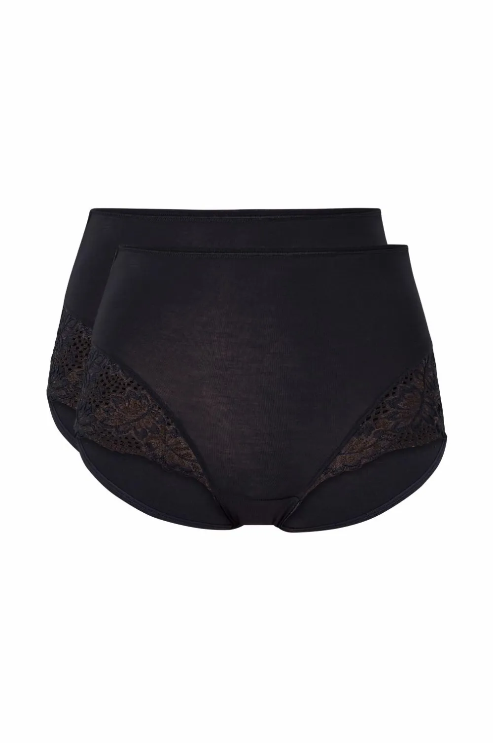 Højtaljede bukser med smal elastik i taljen. Fremstillet i blød bambusviskose med blonder i siderne. Foret i skridtet.