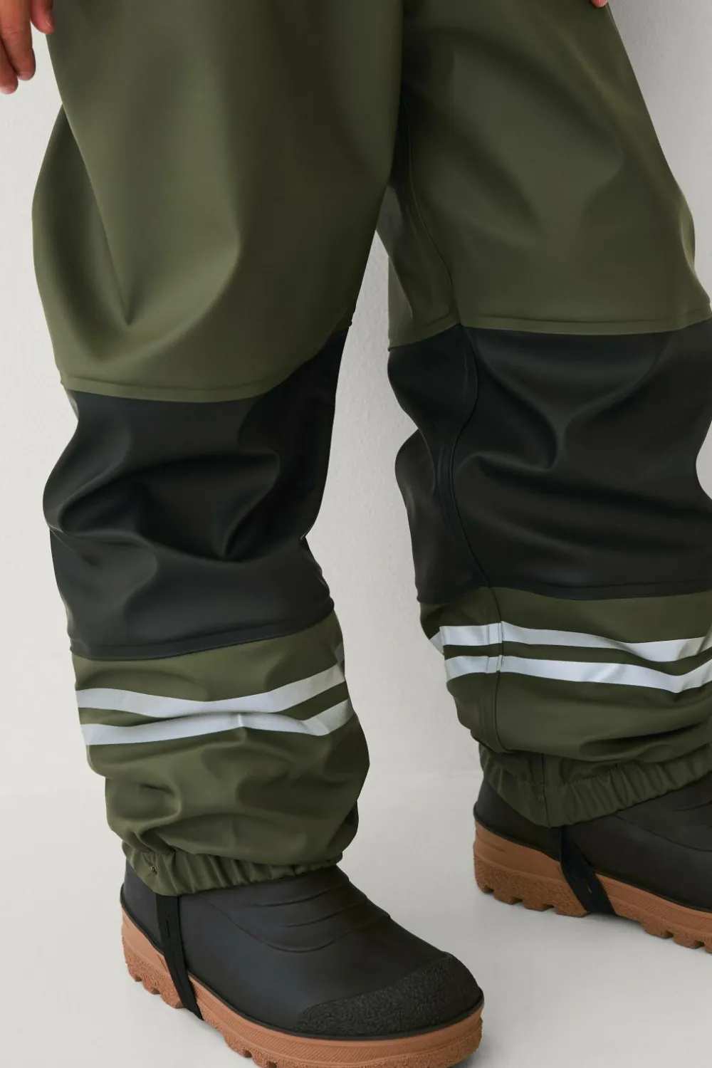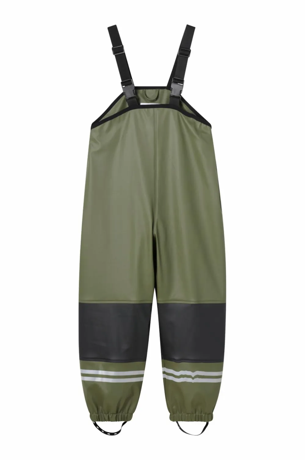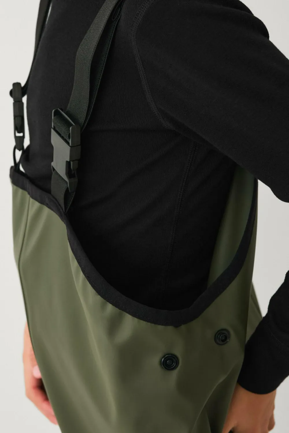• Høje regnbukser med justérbare, elastiske seler