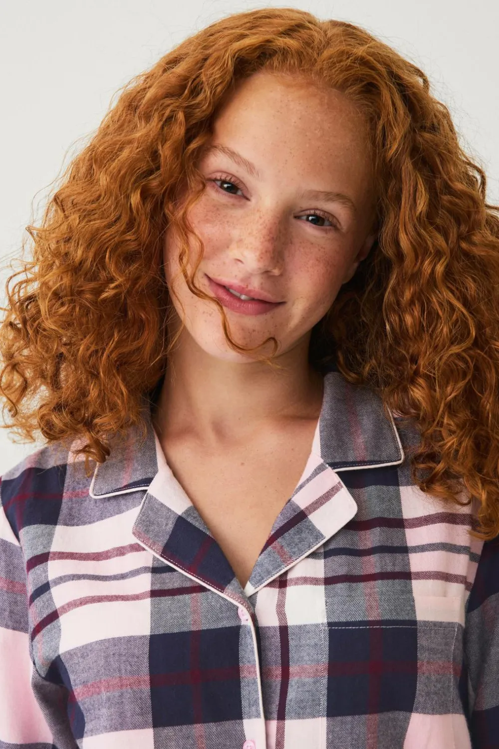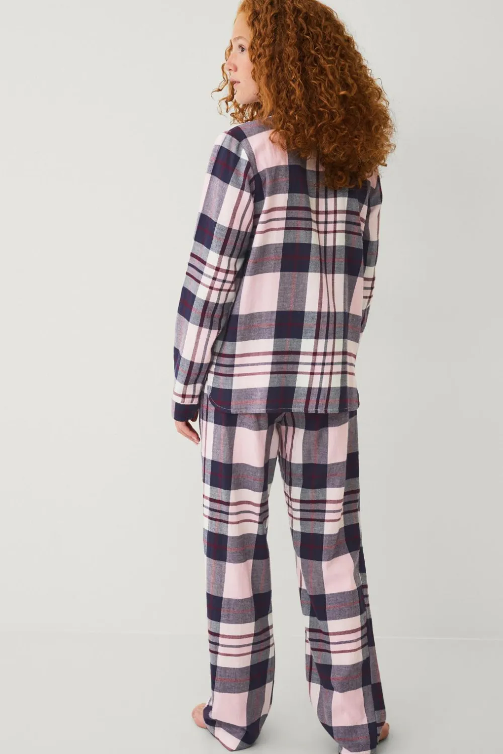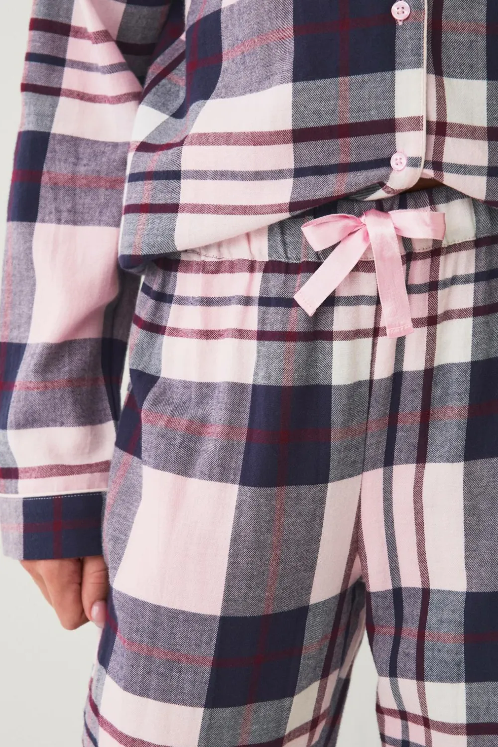 Ellos Collection Flonelpyjamas 2 dele rosa rutet Sale