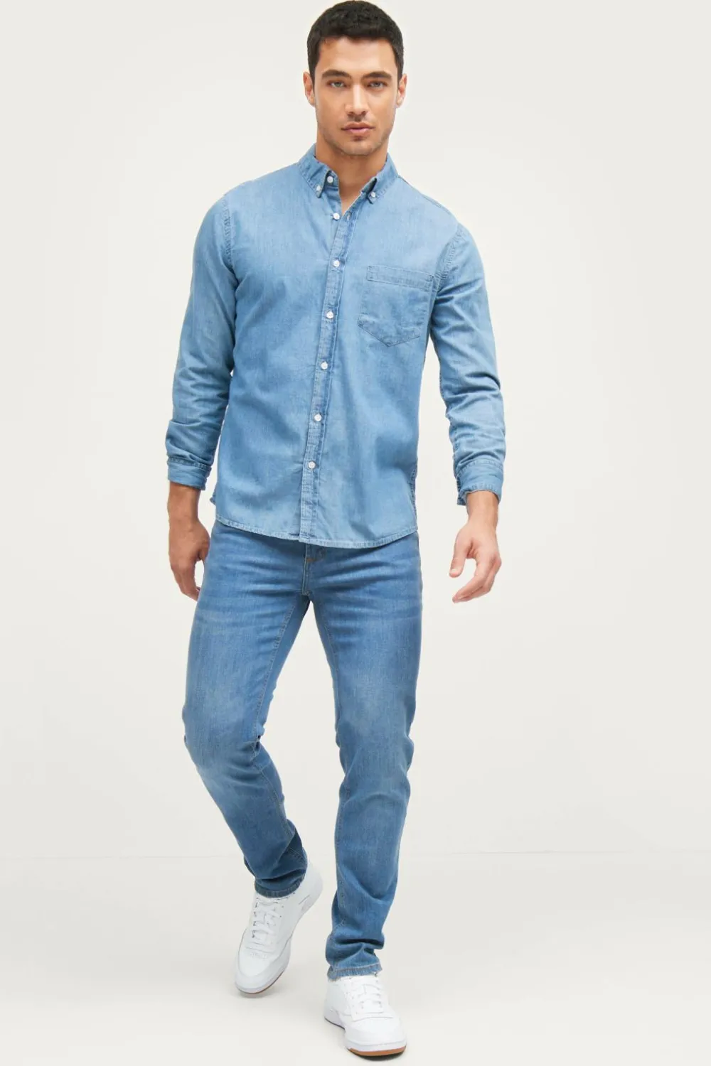 Jeans i 5-lommemodel med lige ben.
