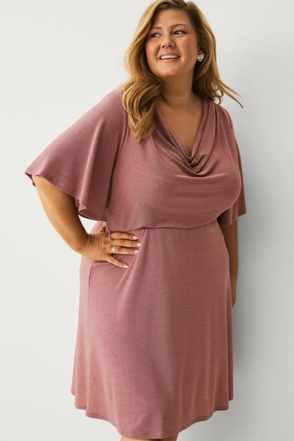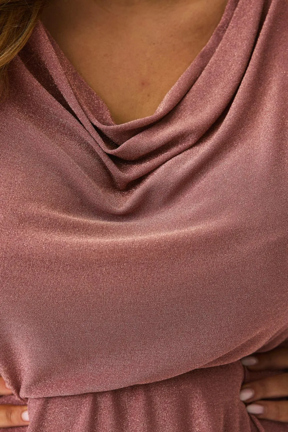 • Bokslæg på skuldrene med draperet halsudskæring
