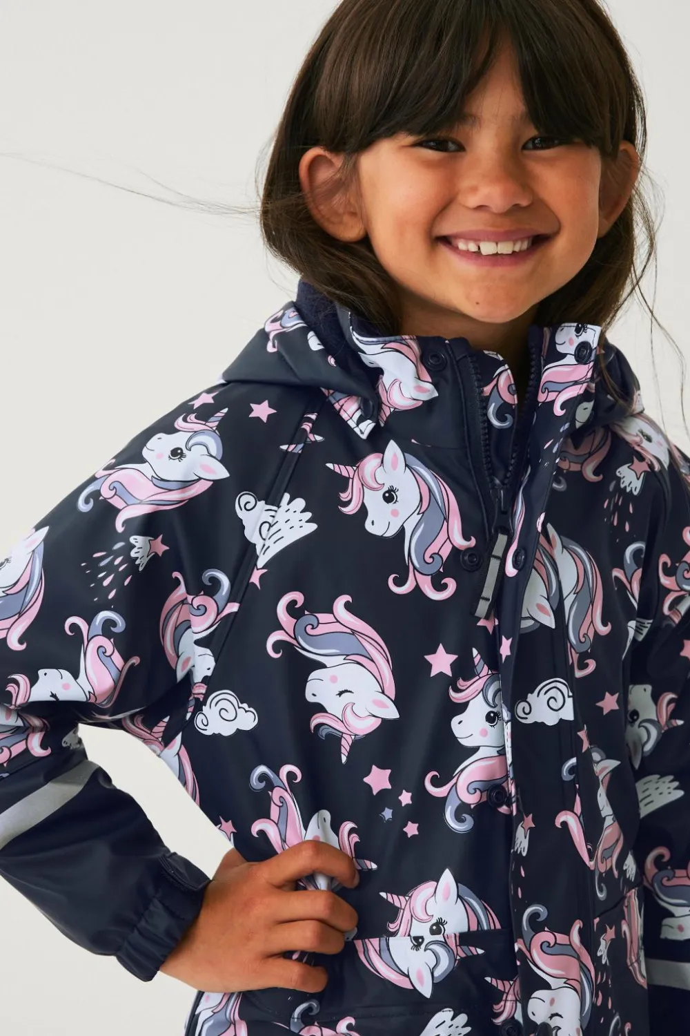 Vandtæt, let polstret regnsæt med varmt fleecefor.