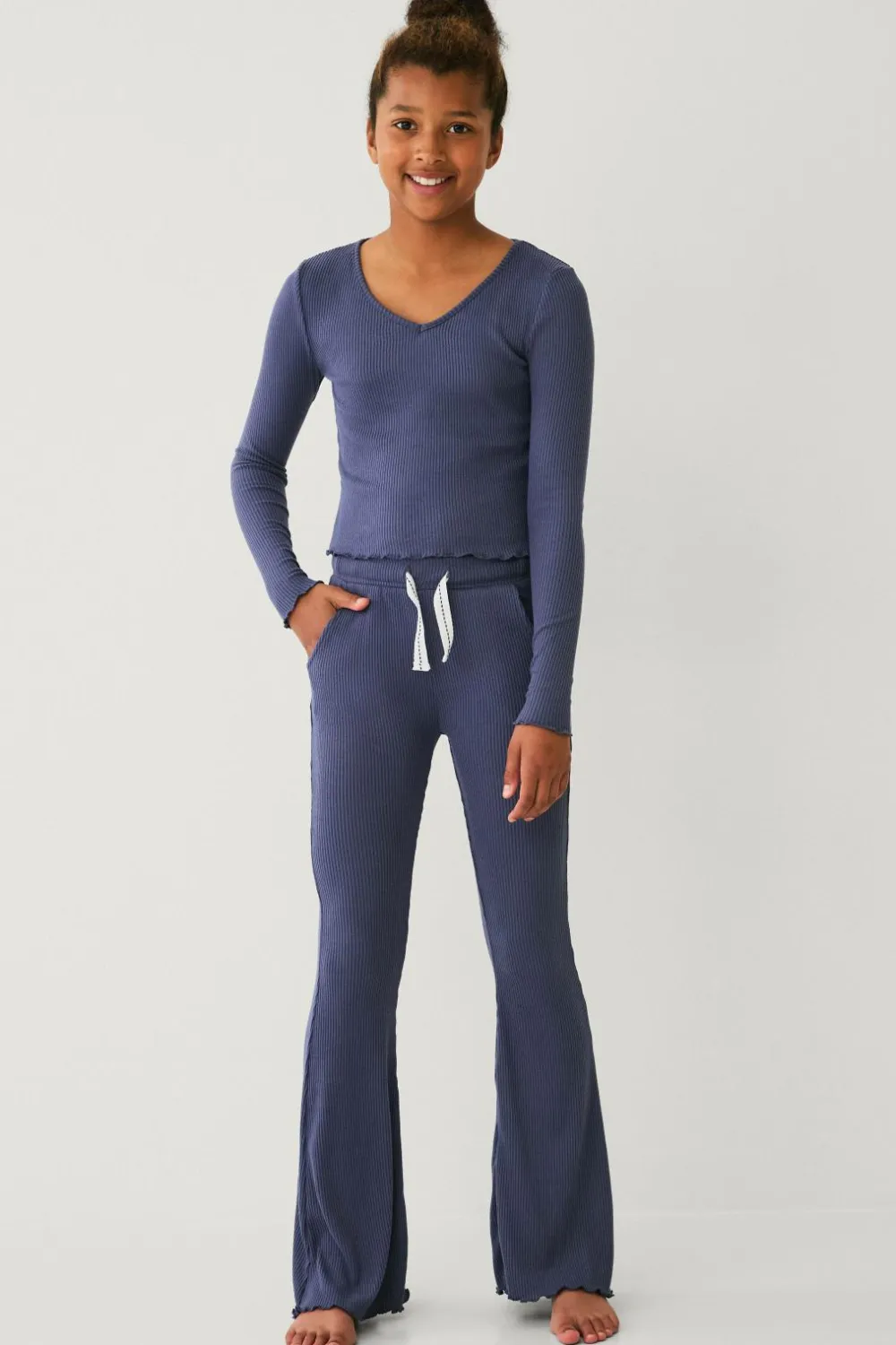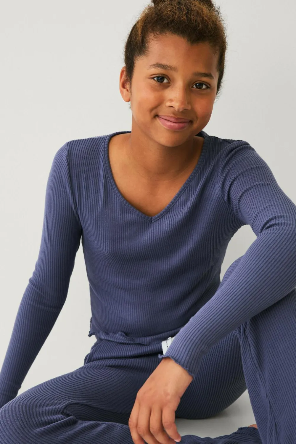 • Blød, ribbet top med lange ærmer