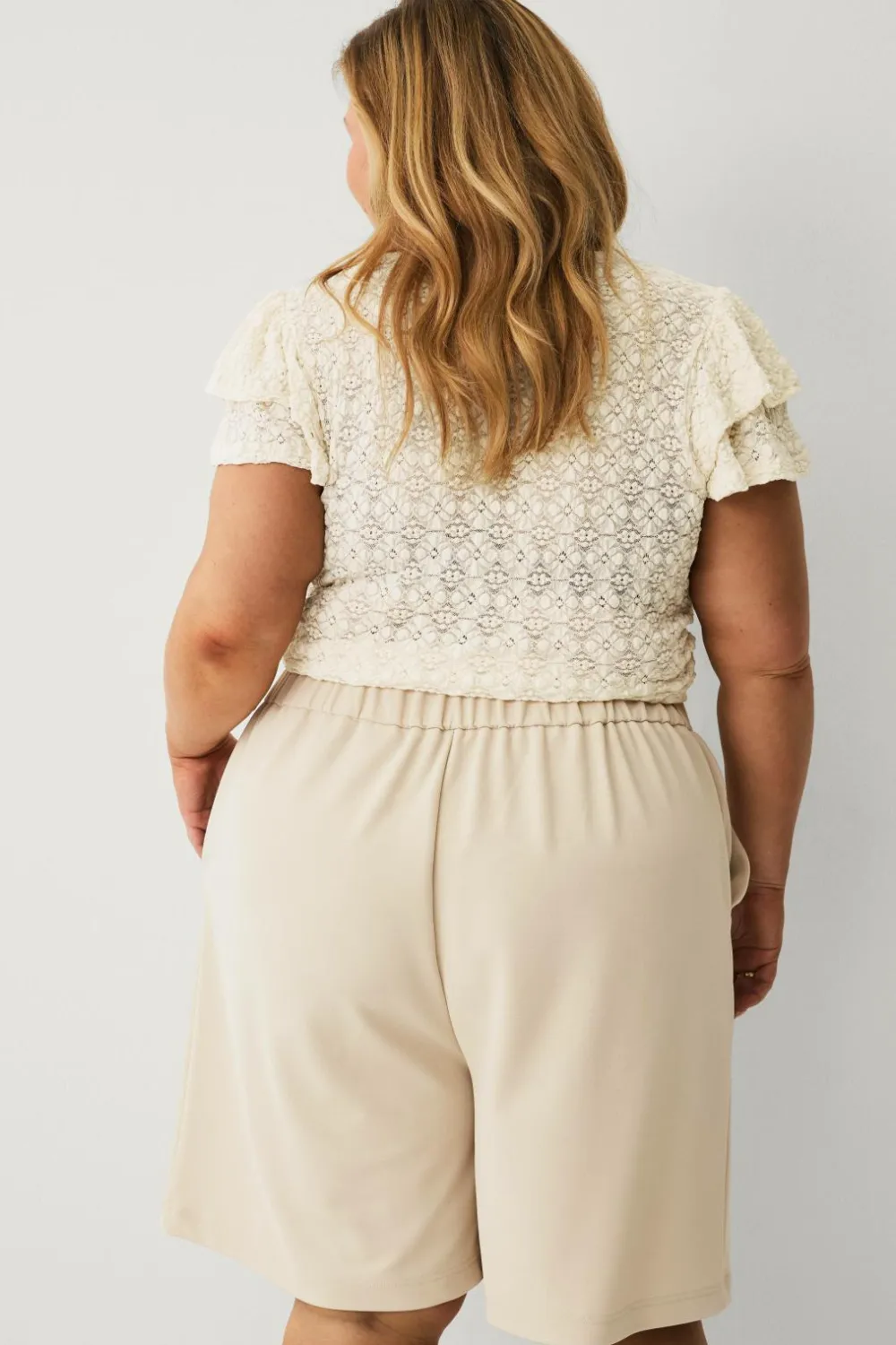 • Rynket elastik bagpå ved taljen