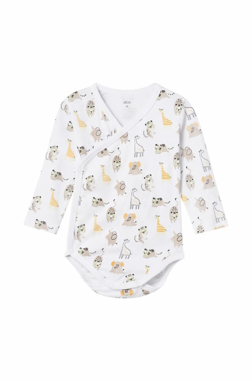 • Langærmet top med slå-om design med trykknapper og bindebånd