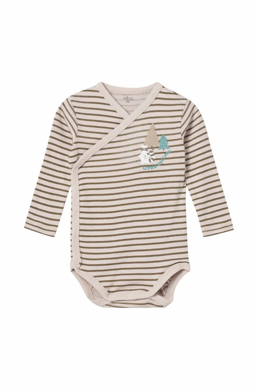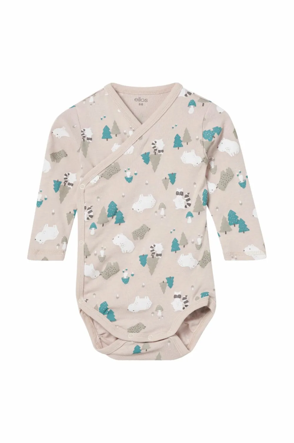 2 langærmede slå om-bodyer med trykknapper foran og i skridtet.