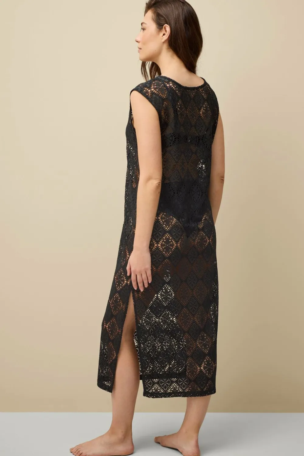 • Ærmeløs kjole i elastisk blonde