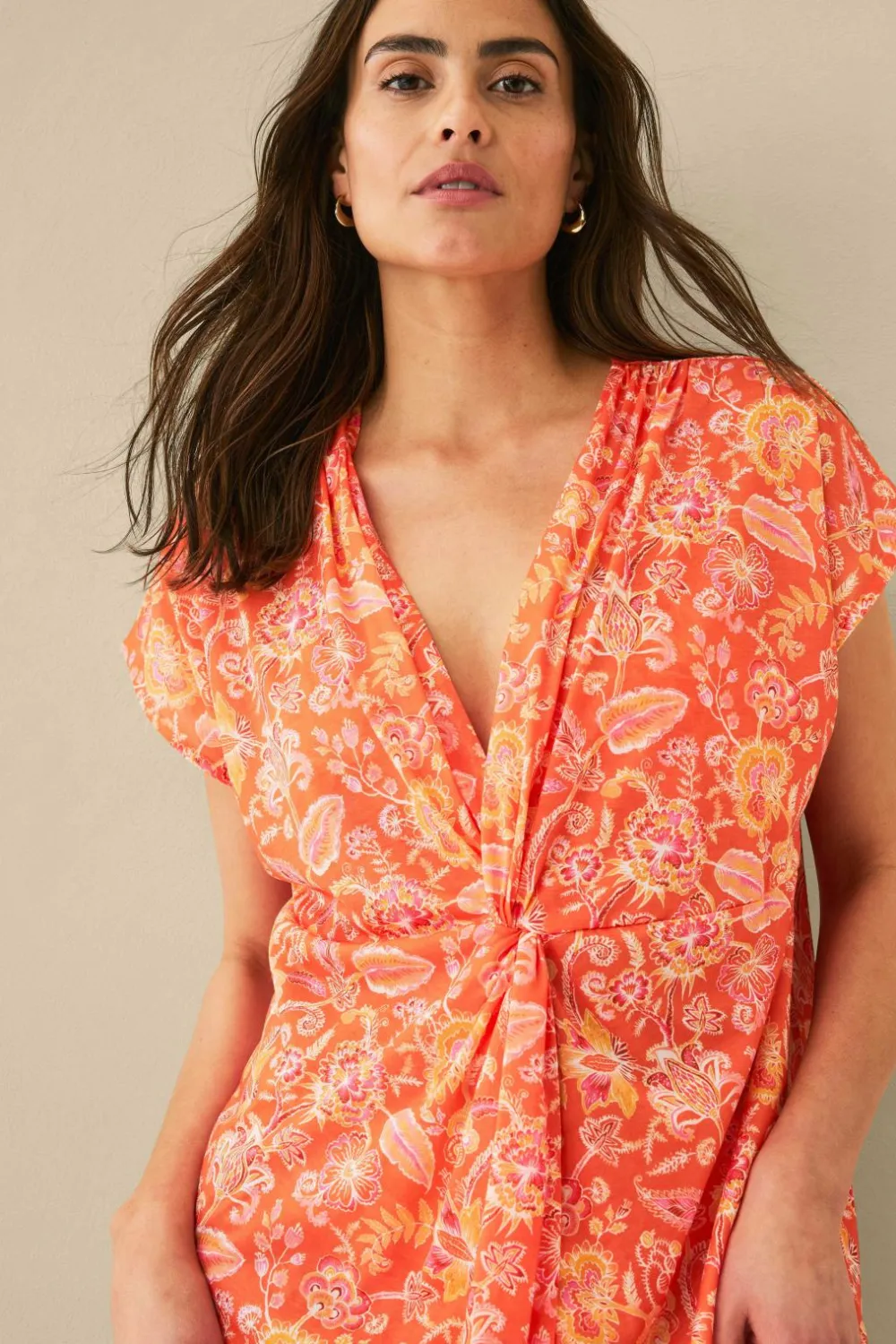 • Kortærmet strandkjole i let, mønstret polyester