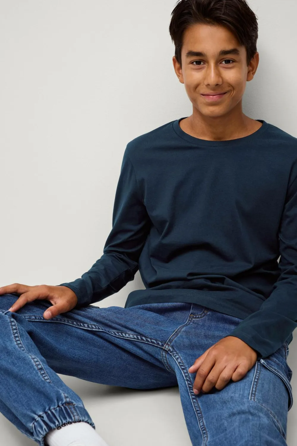 • Langærmet t-shirt i bomuld