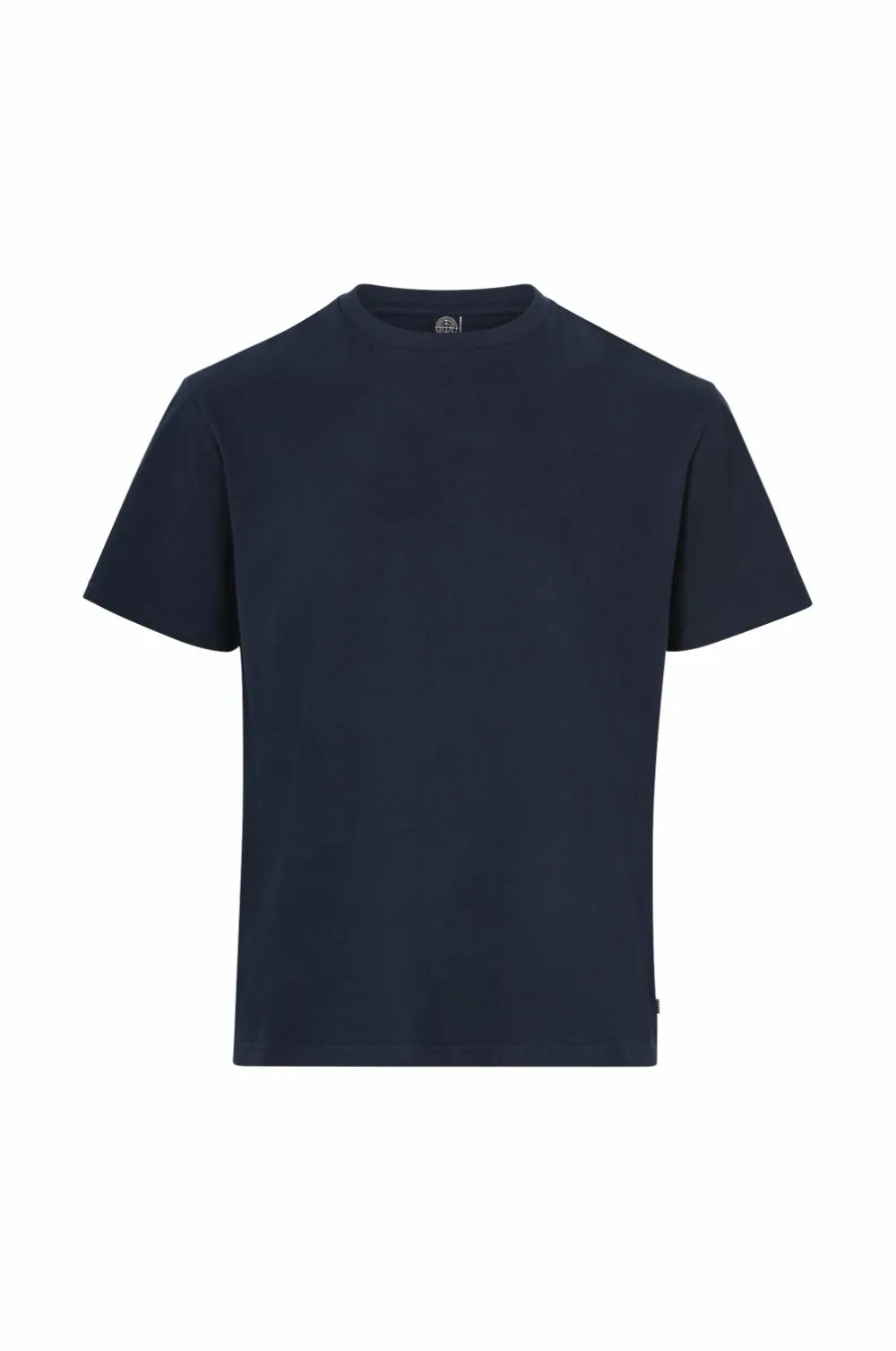 Ensfarvet T-shirt af bomuld i ekstra kraftig jersey (vikt 220 gsm) med rund hals med ribkant.