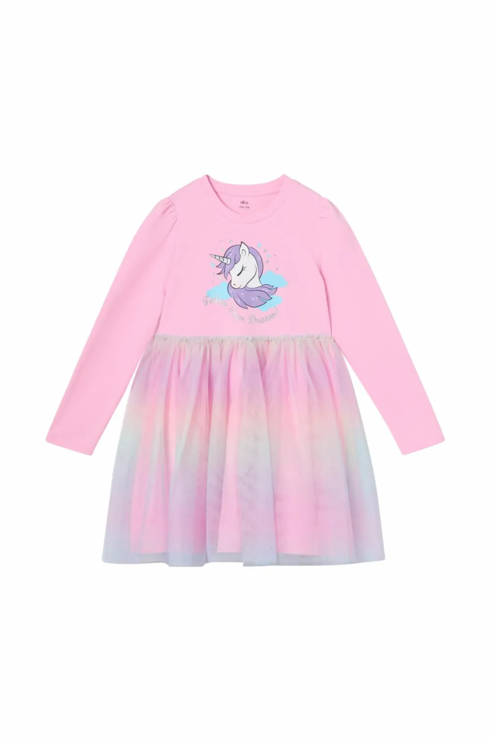 • Langærmet kjole med øvre del i elastisk jersey