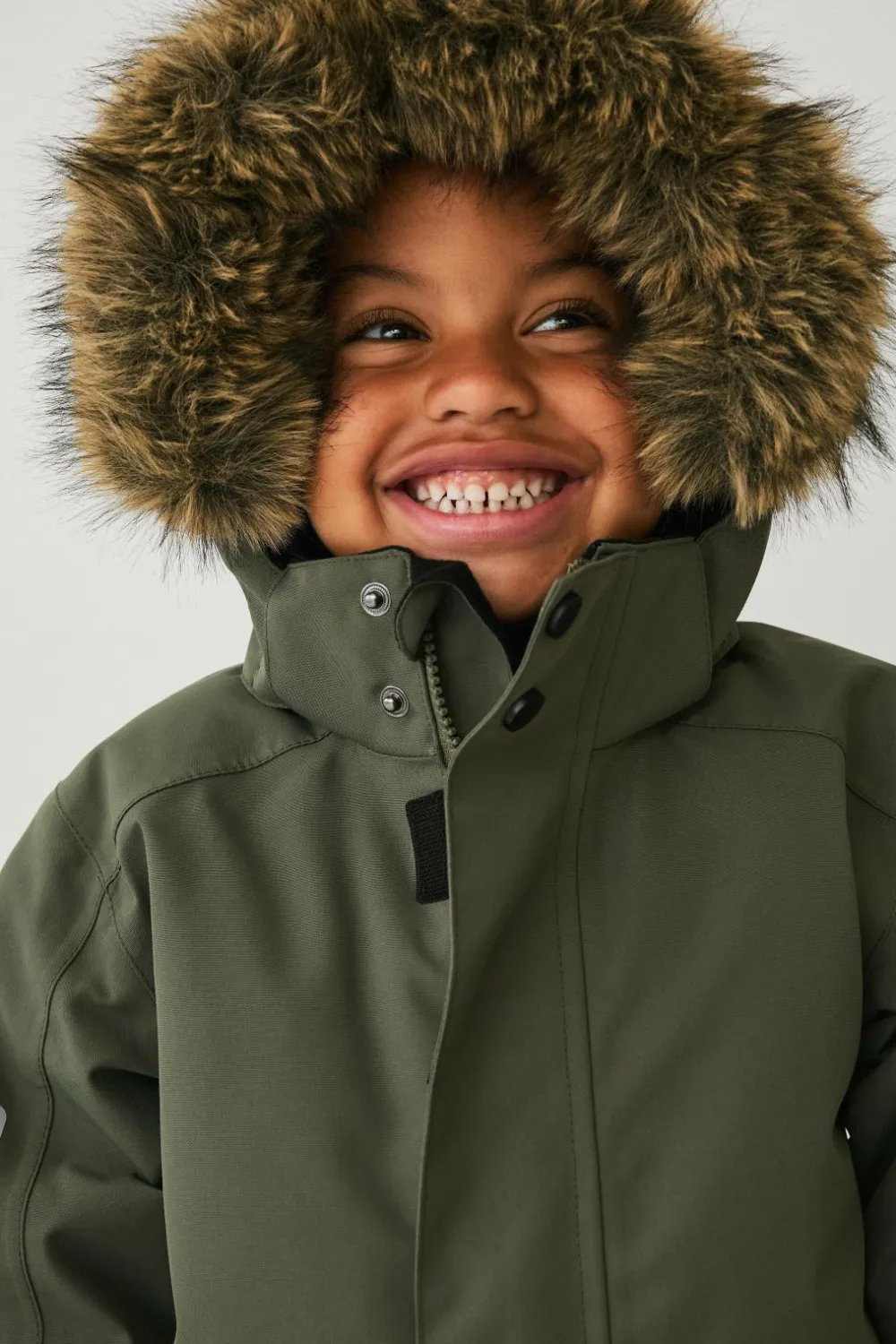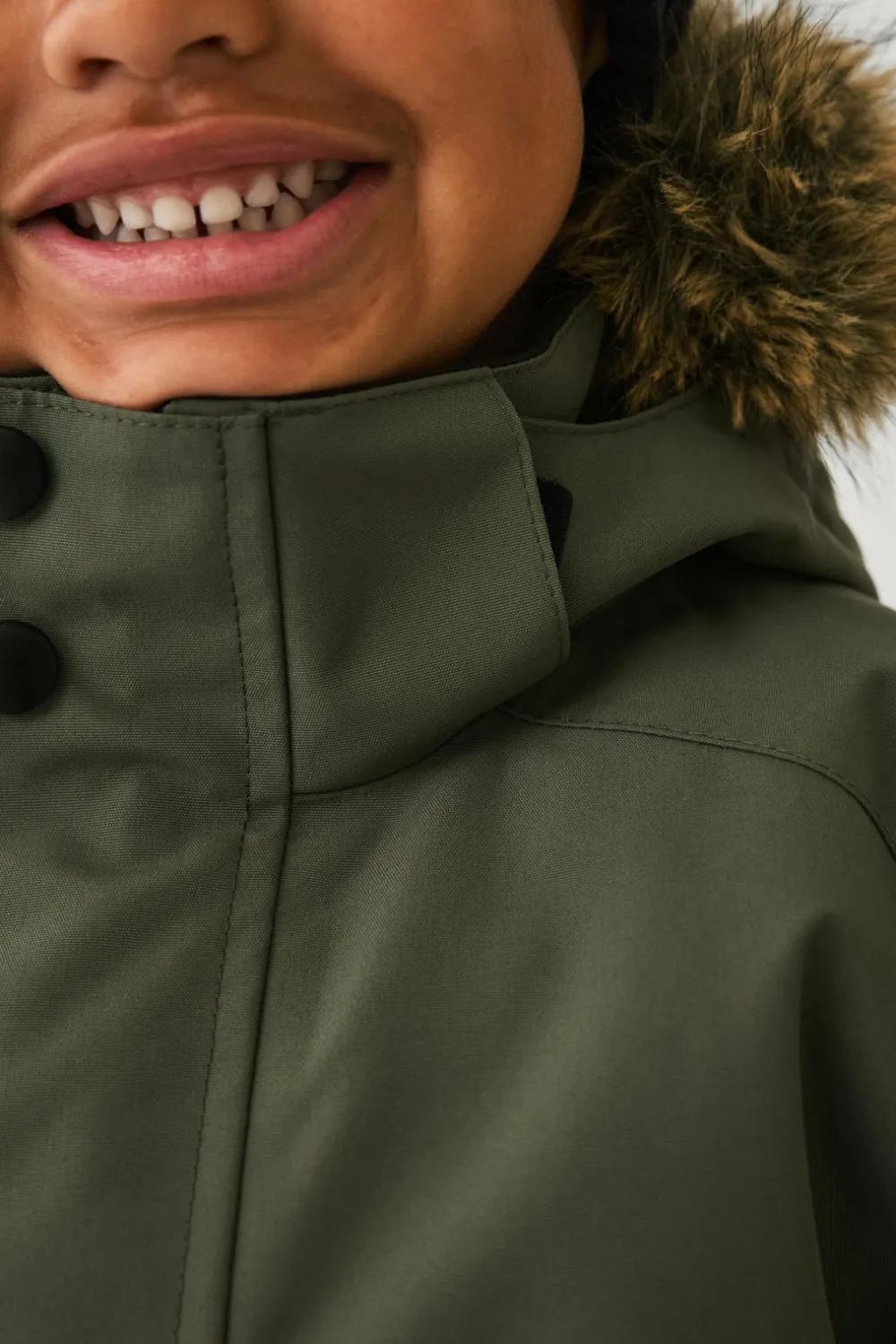 • Aftagelig, justérbar hætte med aftagelig kunstpelskant