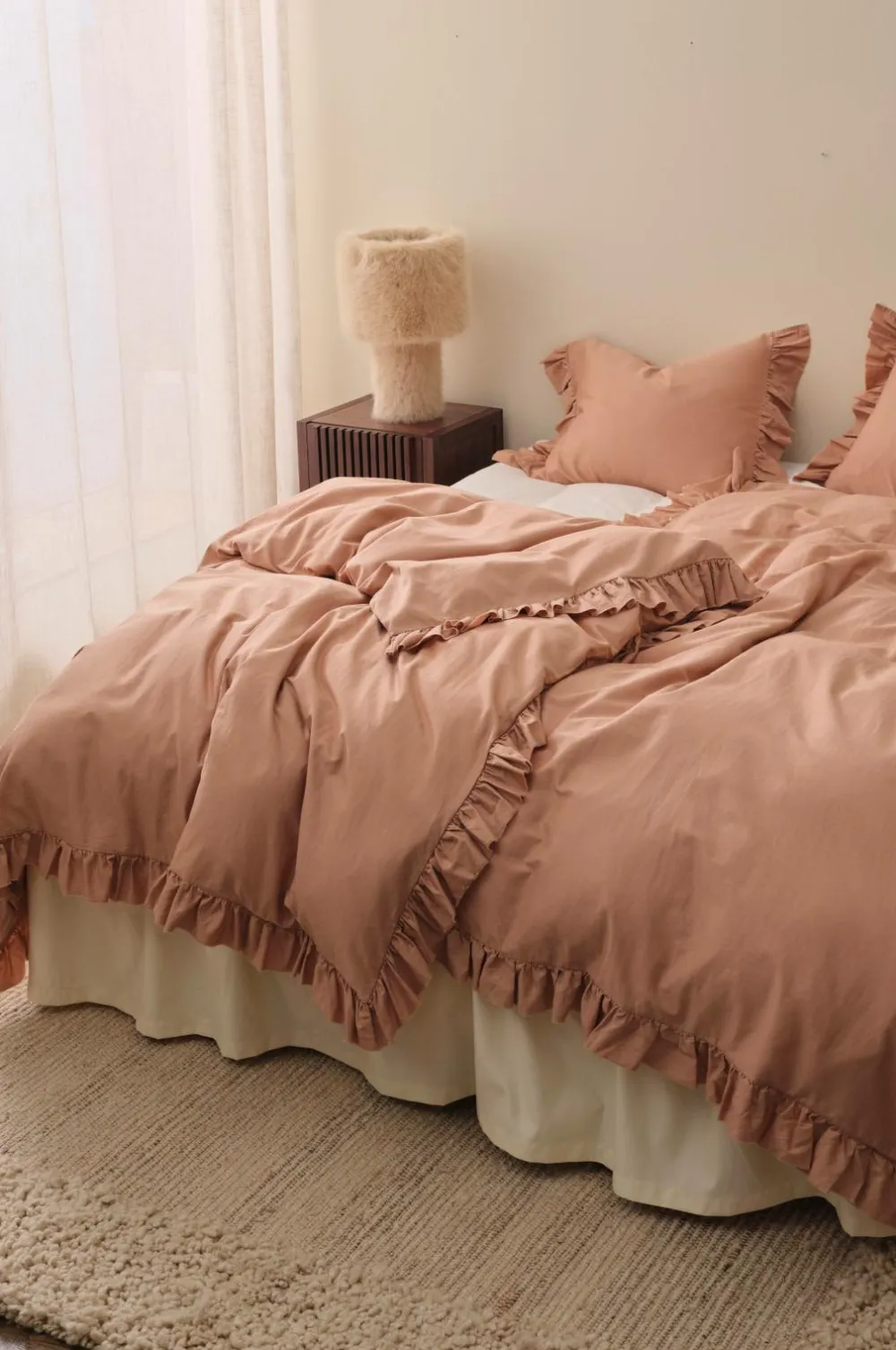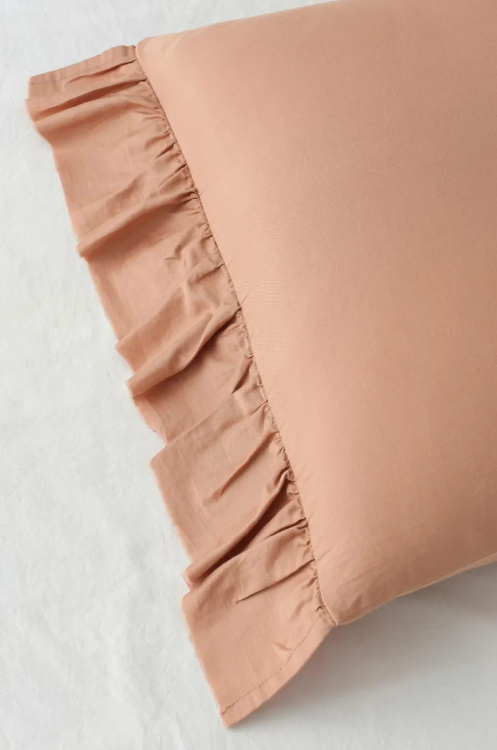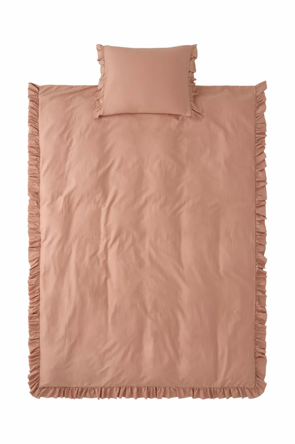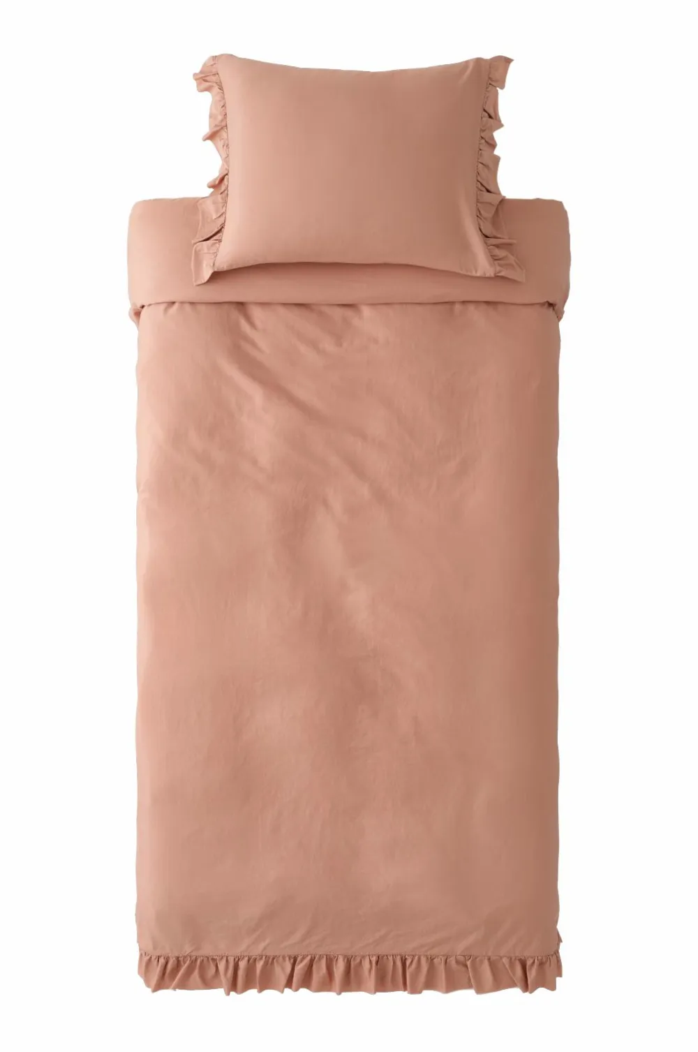 • Pudebetrækket har en 8 cm lang flæse med rå kant på de korte sider.