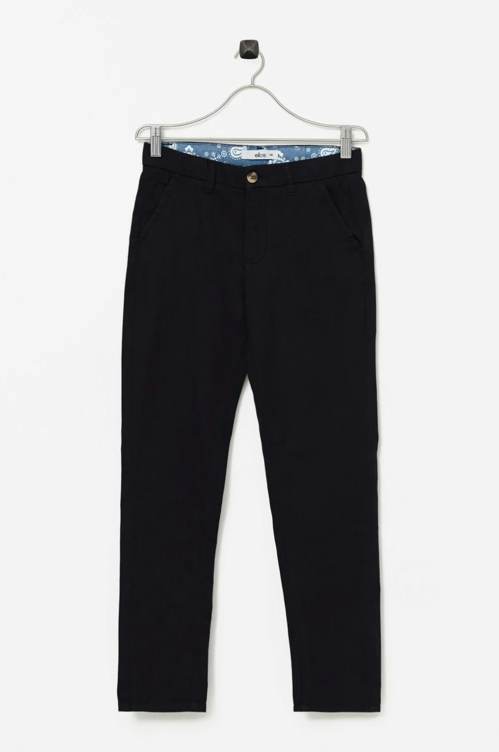 Chinos Sloane med lommer i siderne og paspolerede lommer med knap bagpå. Gylp med lynlås og knap. Justerbar talje med indvendig knapelastik. I vævet kvalitet.