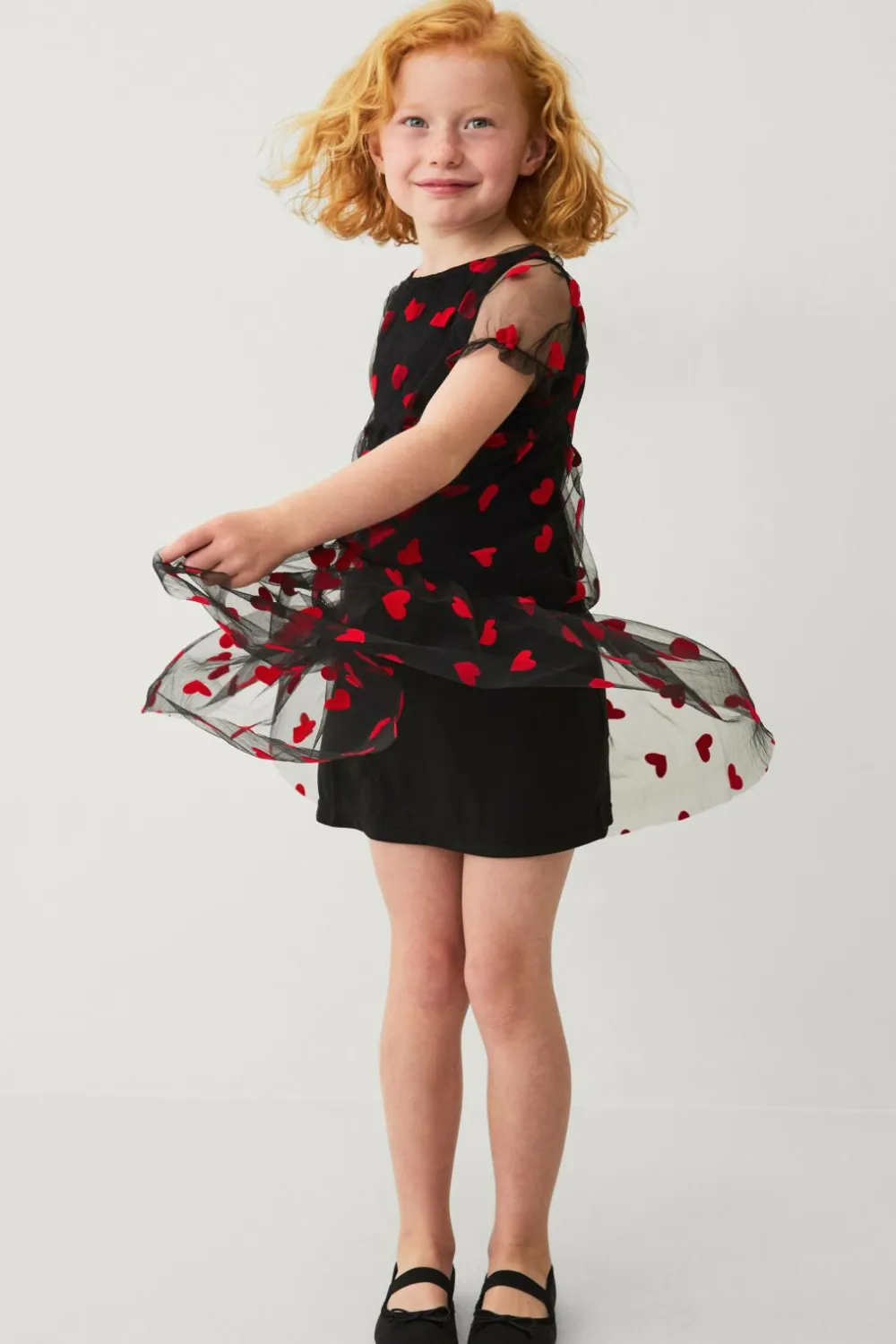 • Kjole i mesh med volant