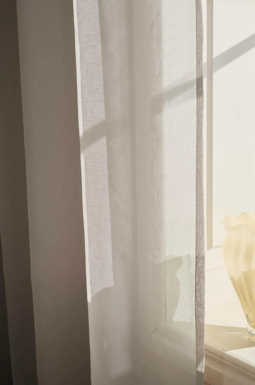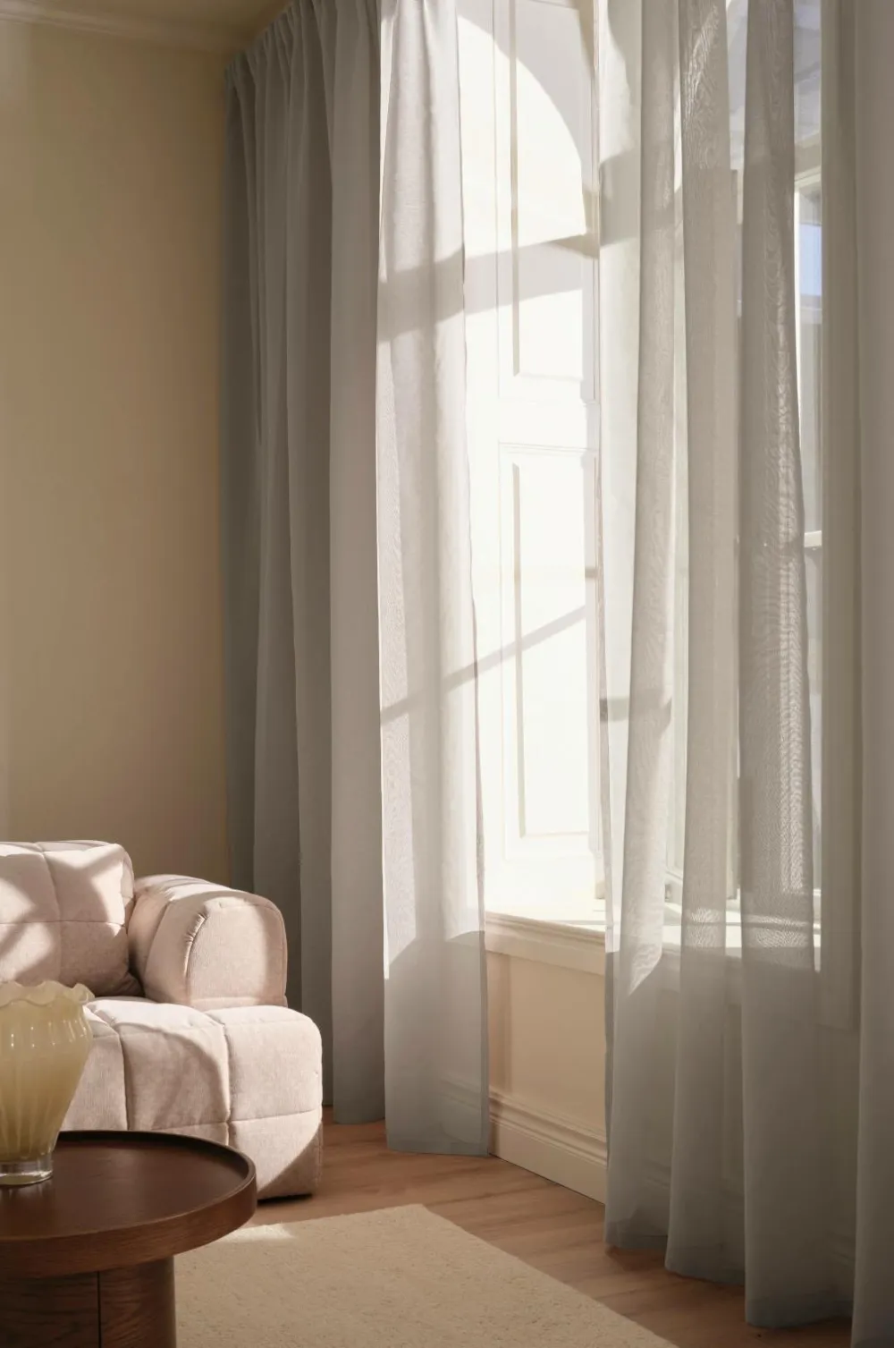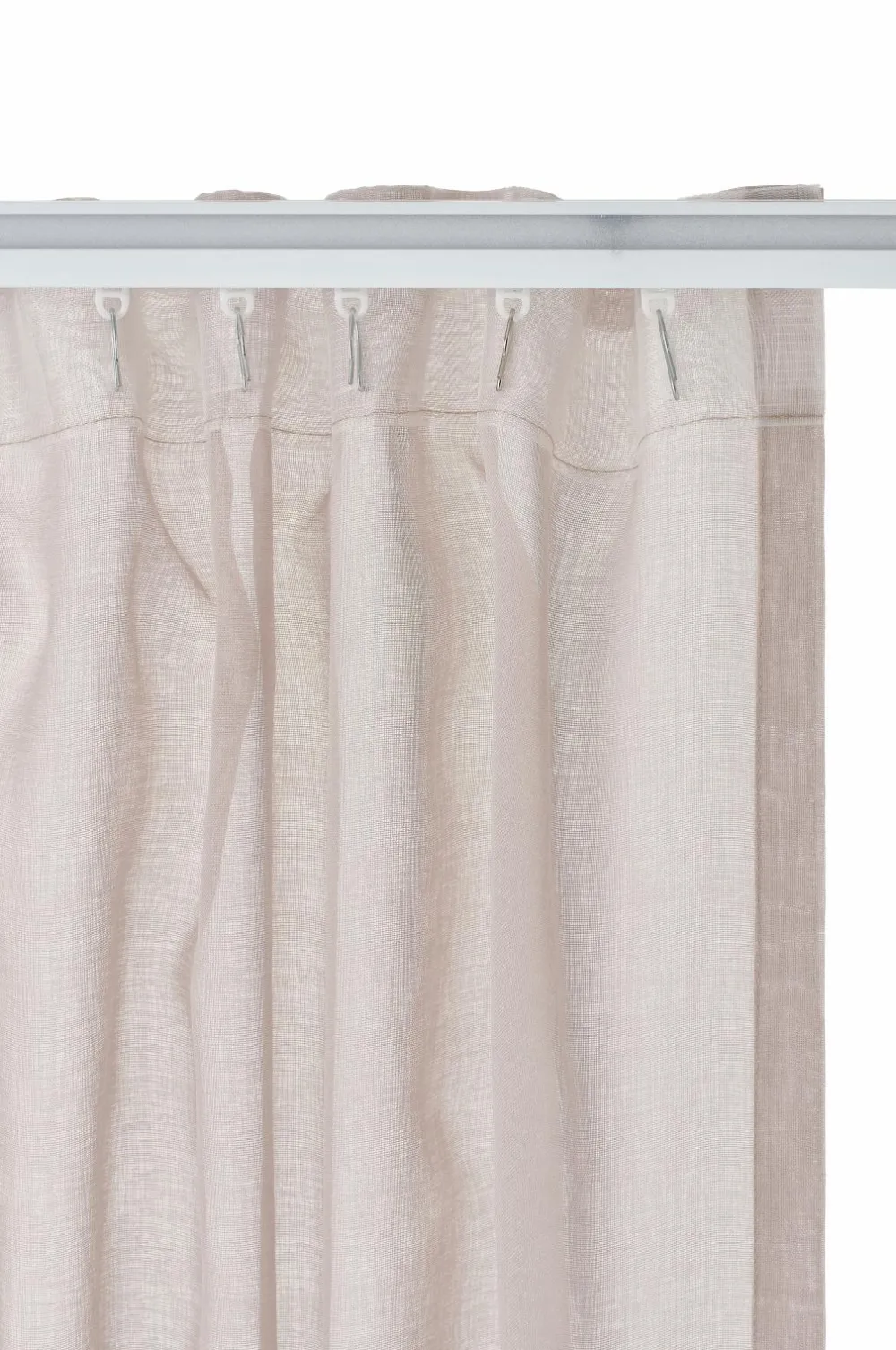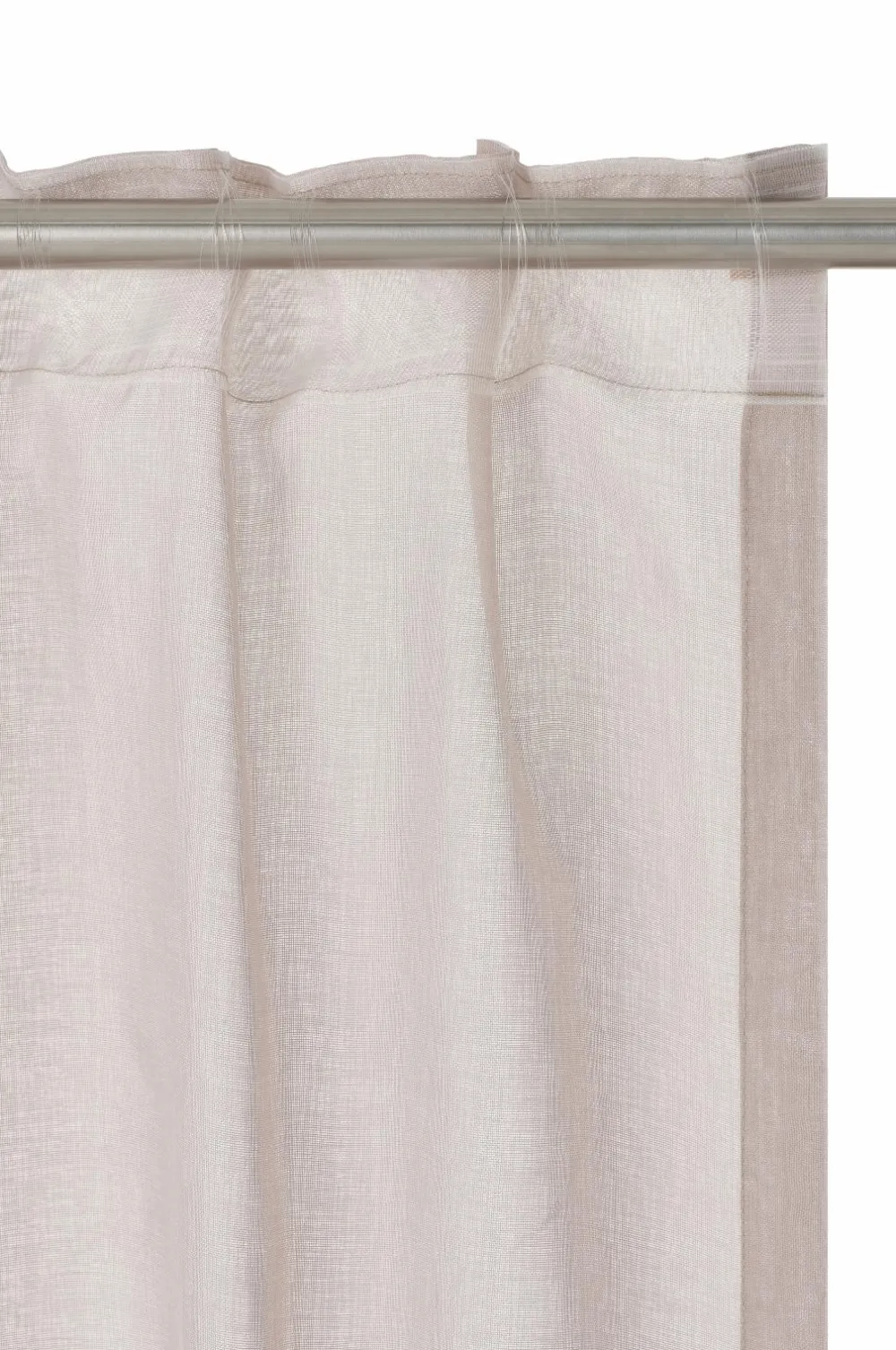 KIRA er et dejligt gennemsigtigt gardin med en smuk, lidt mere sparsom vævning. Lyset filtreres og falder blødt ind i rummet, og hvis du vil skærme for solens stråler eller begrænse gennemsigtigheden, kan du trække gardinet for og stadig få lyset ind. Gardinet har et let fald, og du kan kombinere det med et tungere mørklægningsgardin for at få en luksuriøs hotelfornemmelse. Det bløde farveskema passer godt til stoffets fornemmelse. KIRA-gardinet er fremstillet af certificeret genbrugspolyester. Længderne har påsyet, transparent multifunktionelt bånd i toppen, og det kan hænges op med fingerkroge, en kanal og en skjult bøjle.