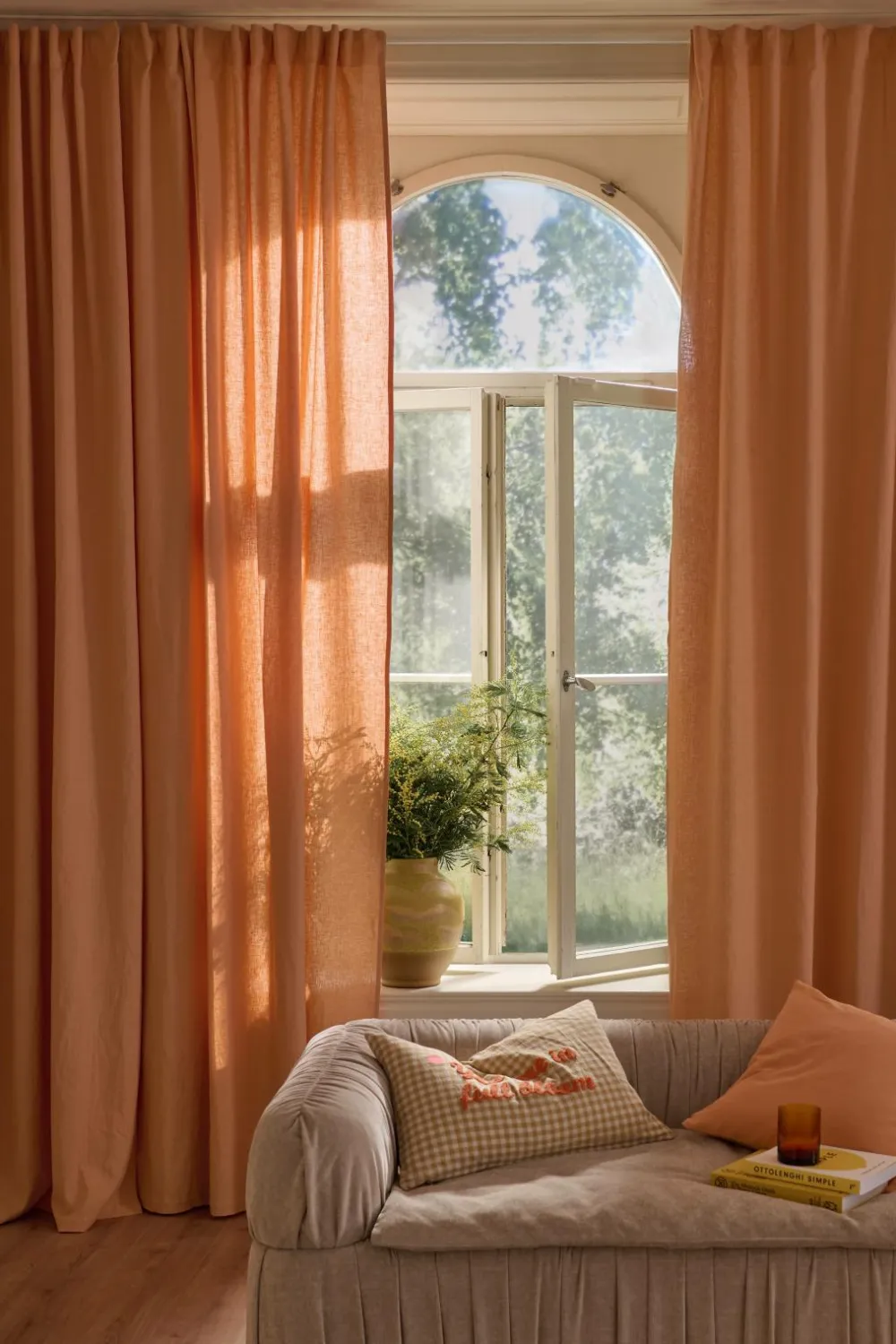 • En ensfarvet Multibåndsgardin i hørblanding