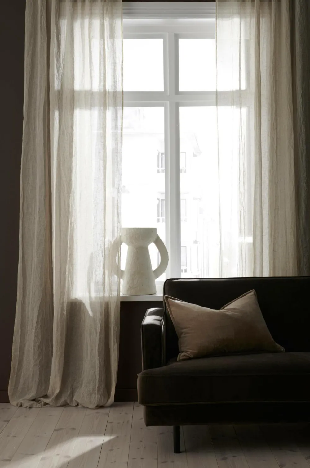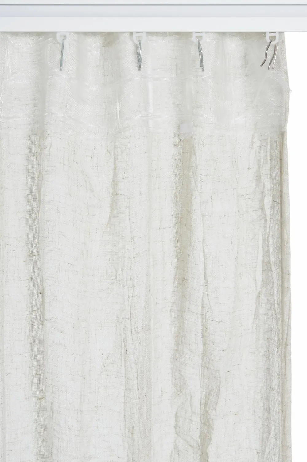 • To Multibåndsgardiner i åbent stof, gennemsigtig, let krøllet Hør-voile