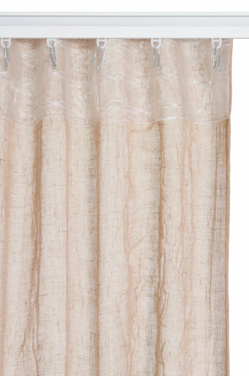• En Multibåndsgardin i åbent stof, gennemsigtig, let krøllet Hør-voile