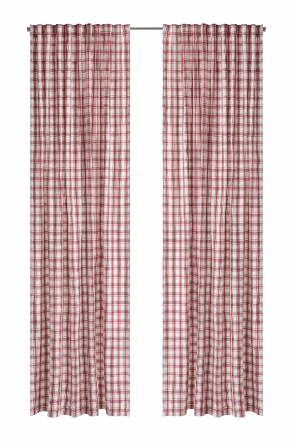 • To Multibåndsgardiner i bomuld med garnfarvede kvadrater