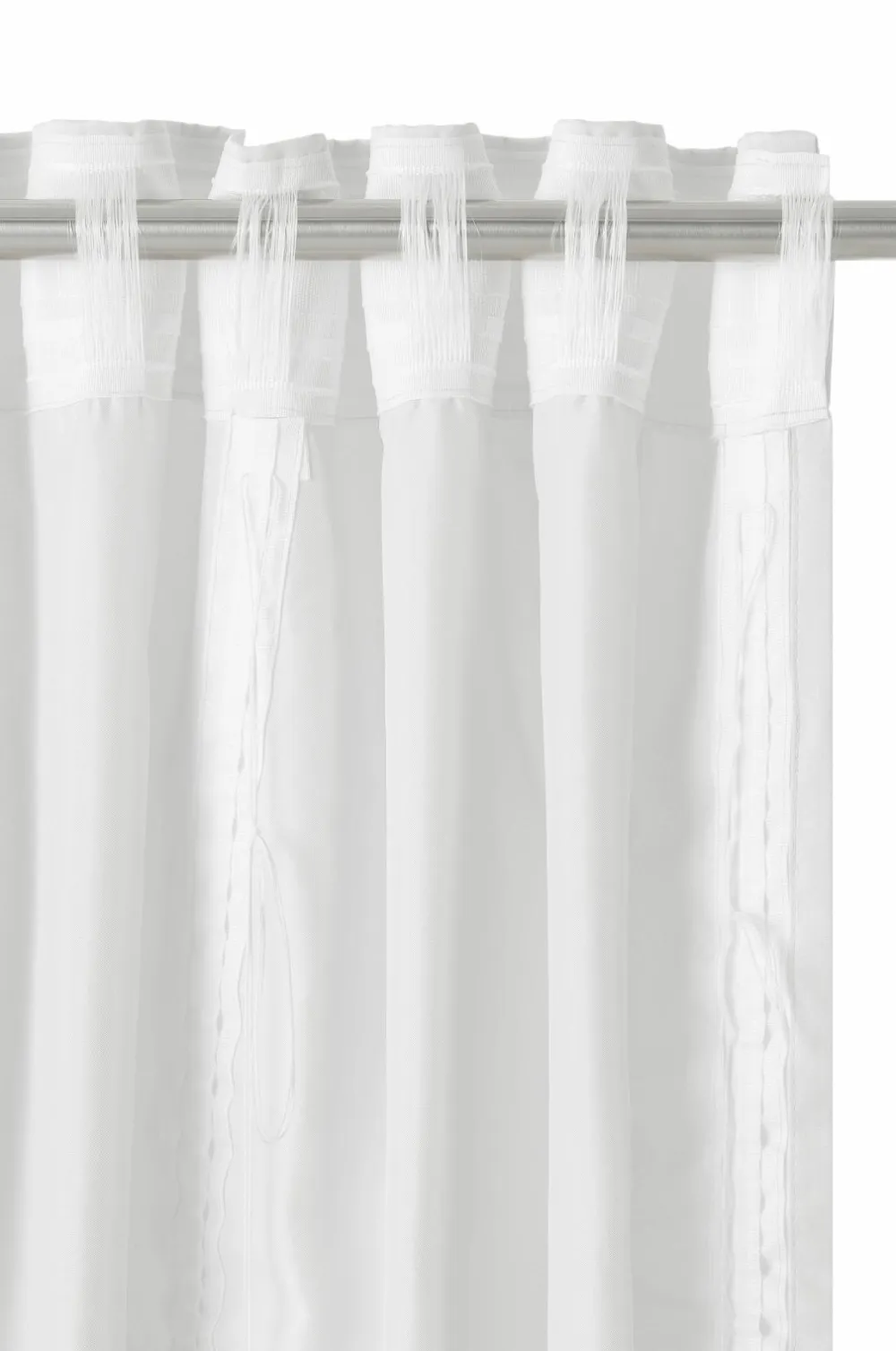 • Gardinet har indsyede lodrette snore, som gør det muligt at trække det op og skabe stilfulde, draperede effekter. Gardinet kan trækkes op til maksimalt ca. 60 cm. Snorene kan skjules i folden i bunden.