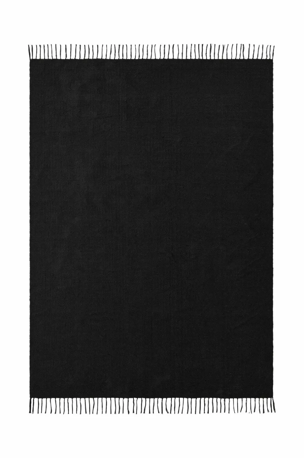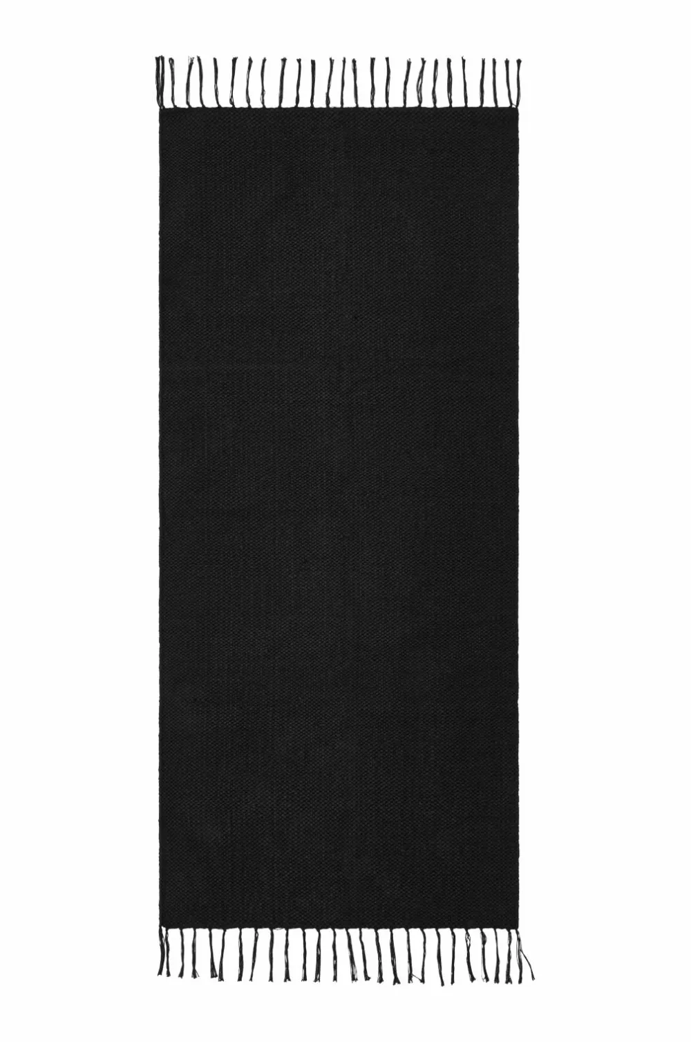Glatvævet bomuldstæppe med farvede frynser. Højde 0,5 cm.