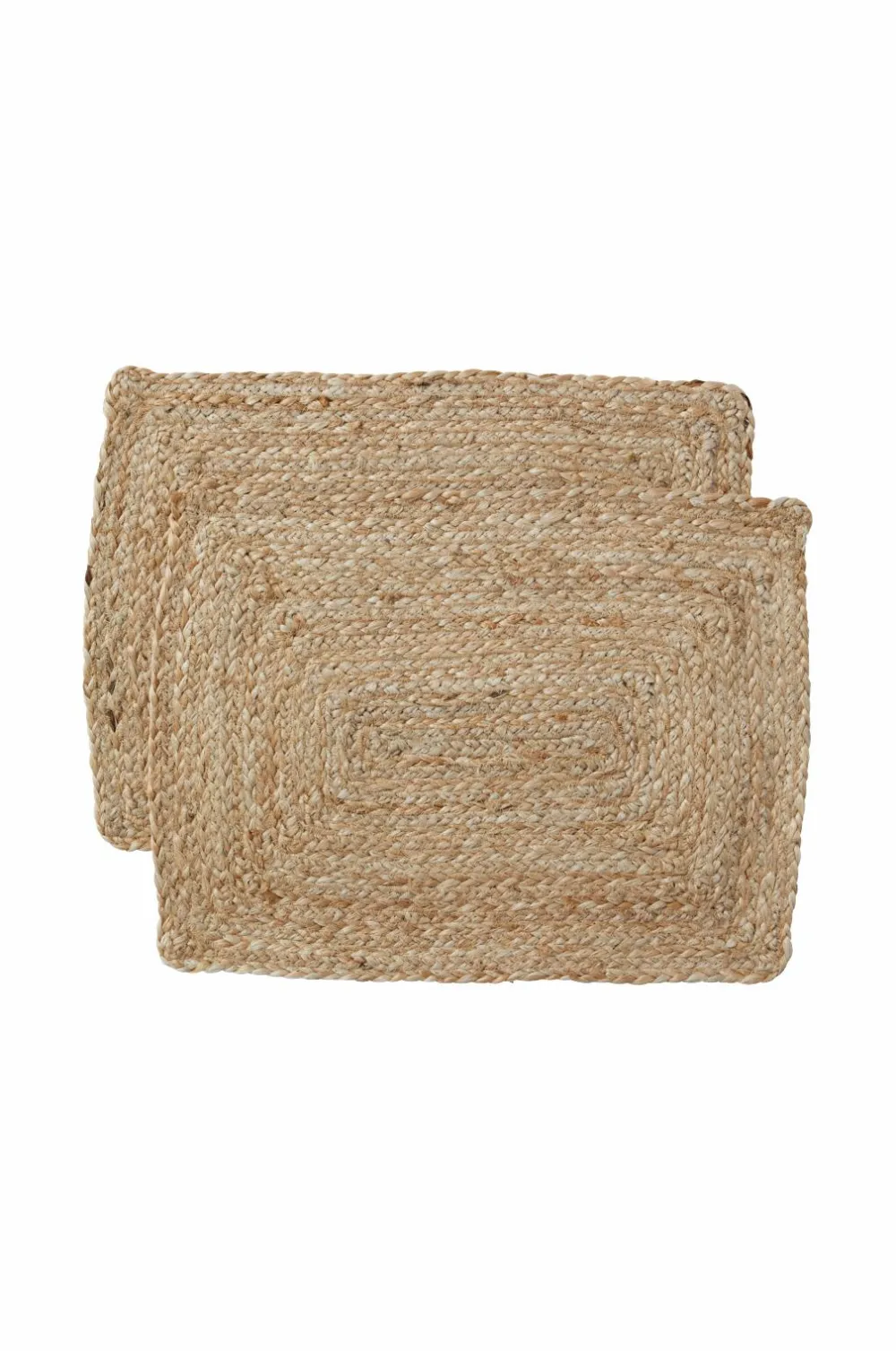 To dækkeservietter i flettet jute i blød kvalitet. Str. 33×45 cm.