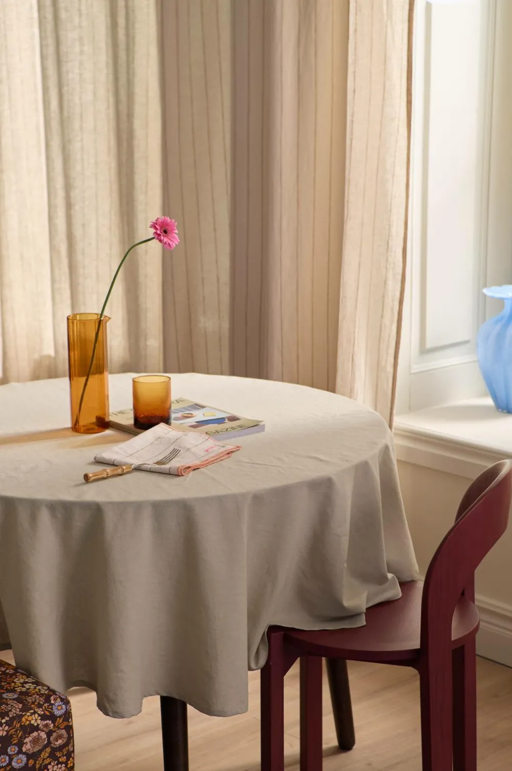 • Rund, ensfarvet dug i bomuld og hør med blød, vasket afslutning