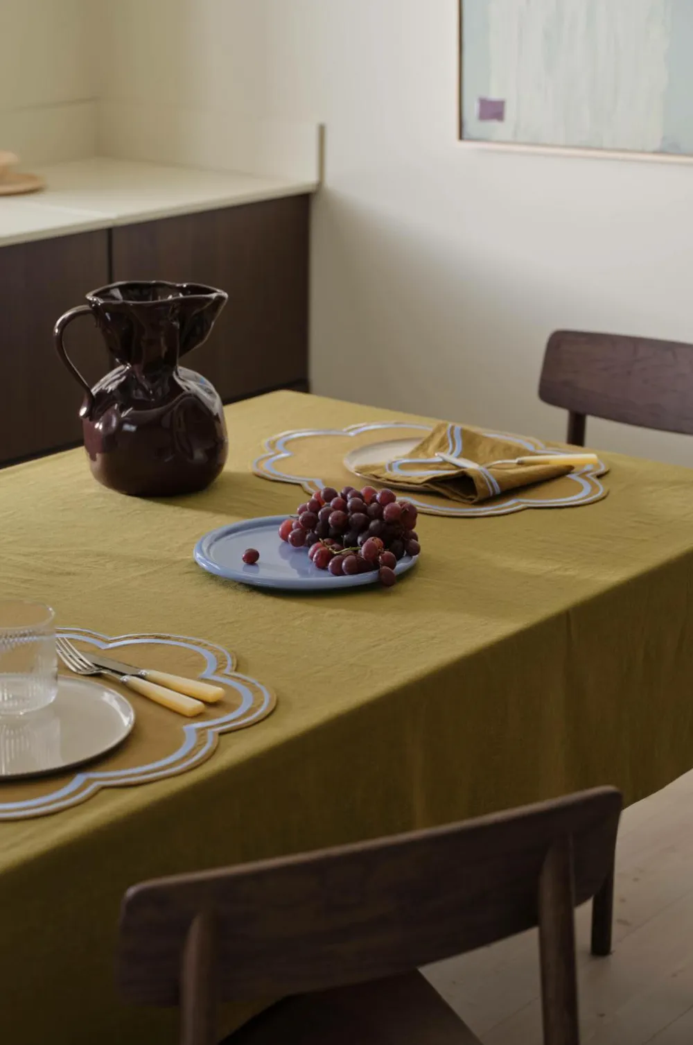 • Ensfarvet dug i bomuld og hør med blød, vasket afslutning