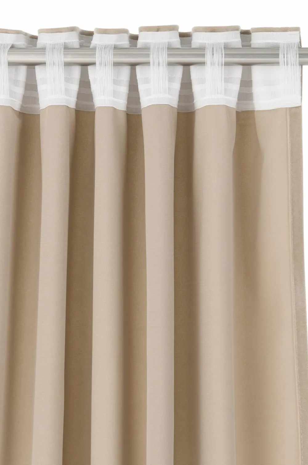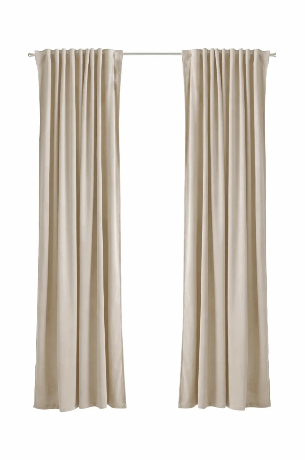 To multibåndslængder i velour med fin glans og blødt fald. Multibåndet gør, at du enten kan hænge gardinerne direkte på en gardinstang gennem de skjulte stropper eller anvende ringe, nålekroge eller fingerkroge. Snore i rynkebåndet gør at du let kan skabe ensartede, flotte læg. Bredde 140 cm. Tre længder: 220, 250 og 300 cm.