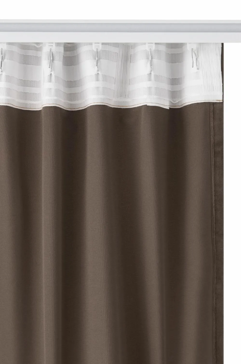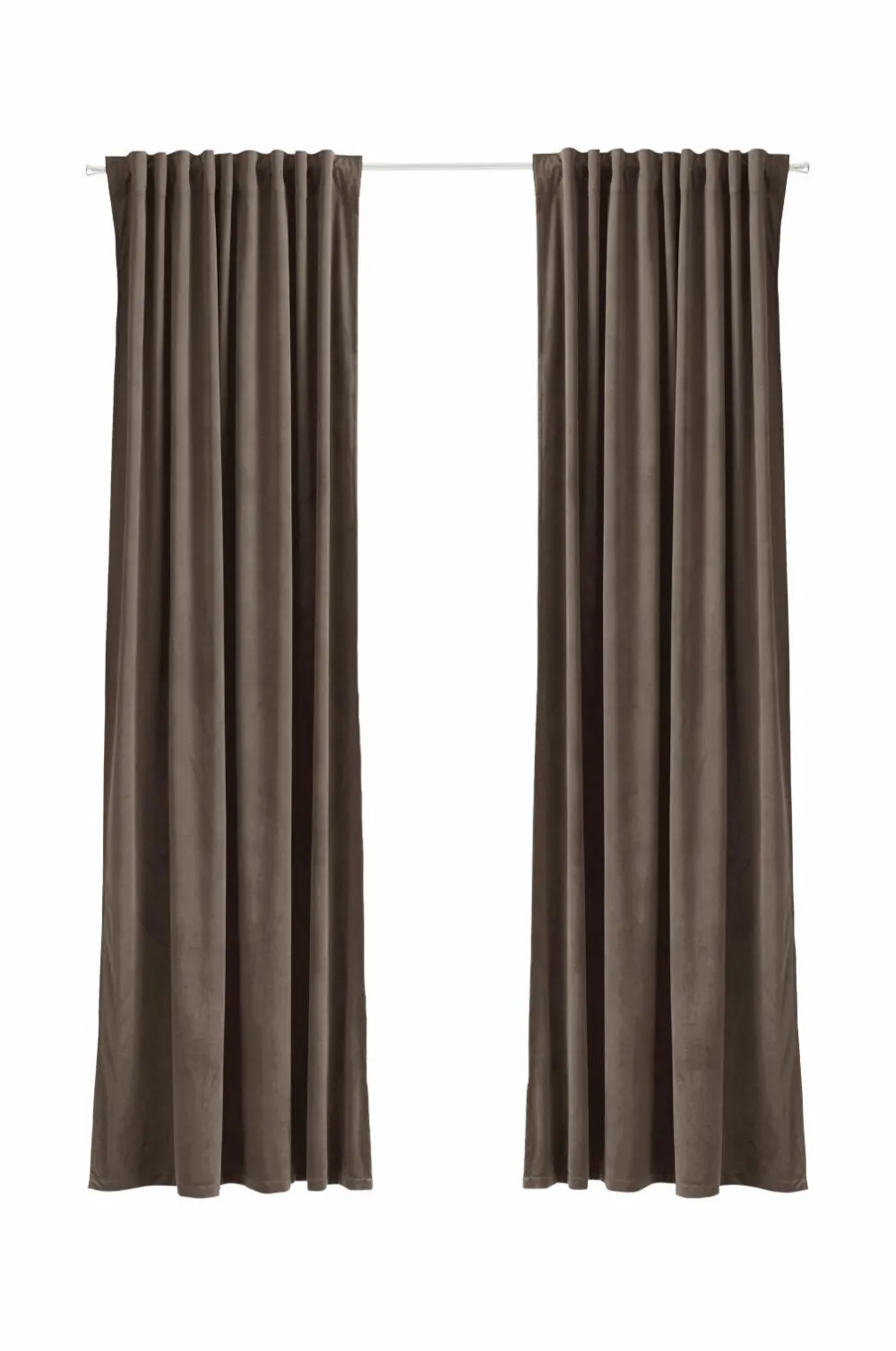 To multibåndslængder i velour med fin glans og blødt fald. Multibåndet gør, at du enten kan hænge gardinerne direkte på en gardinstang gennem de skjulte stropper eller anvende ringe, nålekroge eller fingerkroge. Snore i rynkebåndet gør at du let kan skabe ensartede, flotte læg. Bredde 140 cm. Tre længder: 220, 250 og 300 cm.