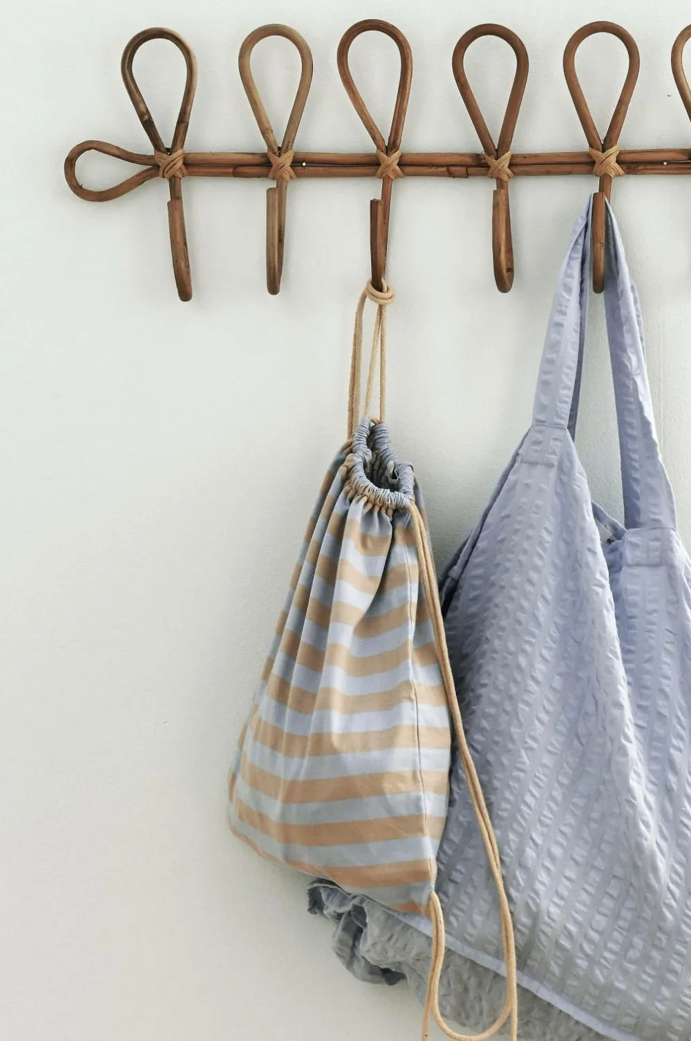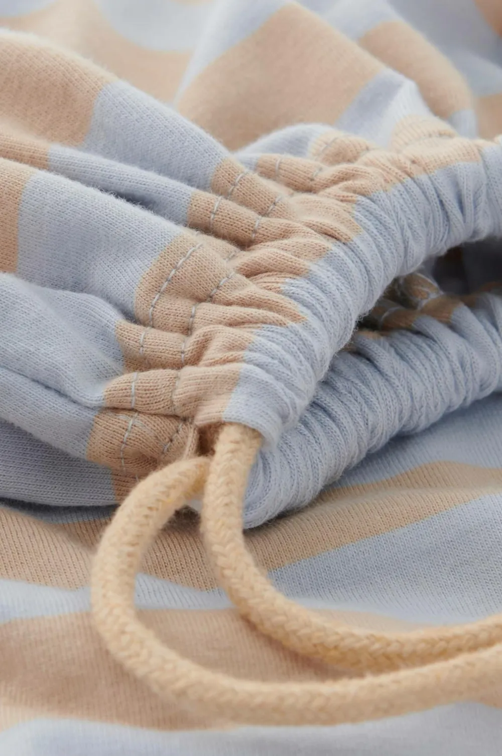 Gymbag i blød, kraftig jersey af økologisk bomuld med vandrette striber. Snørelukning med snor i matchende farve. Mål: B37,5 cm x H 43 cm.