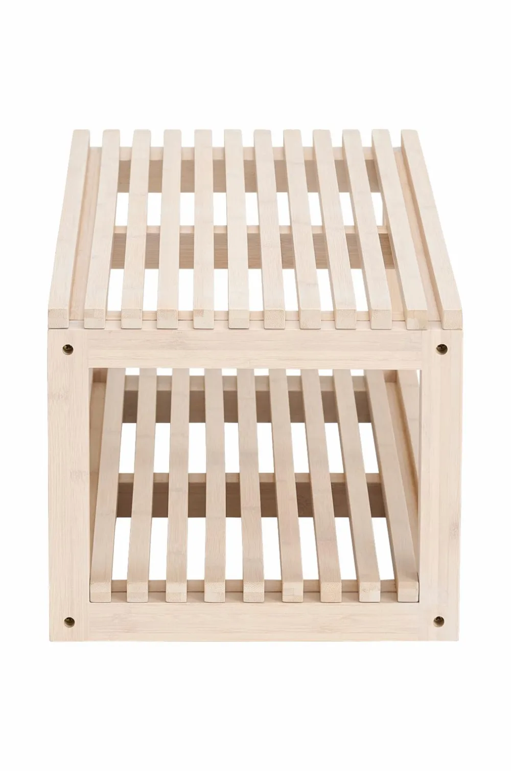 En hylde med 2 hylder, der kan bruges som både hattehylde og skohylde. Kan placeres på gulvet eller hænges op på væggen.