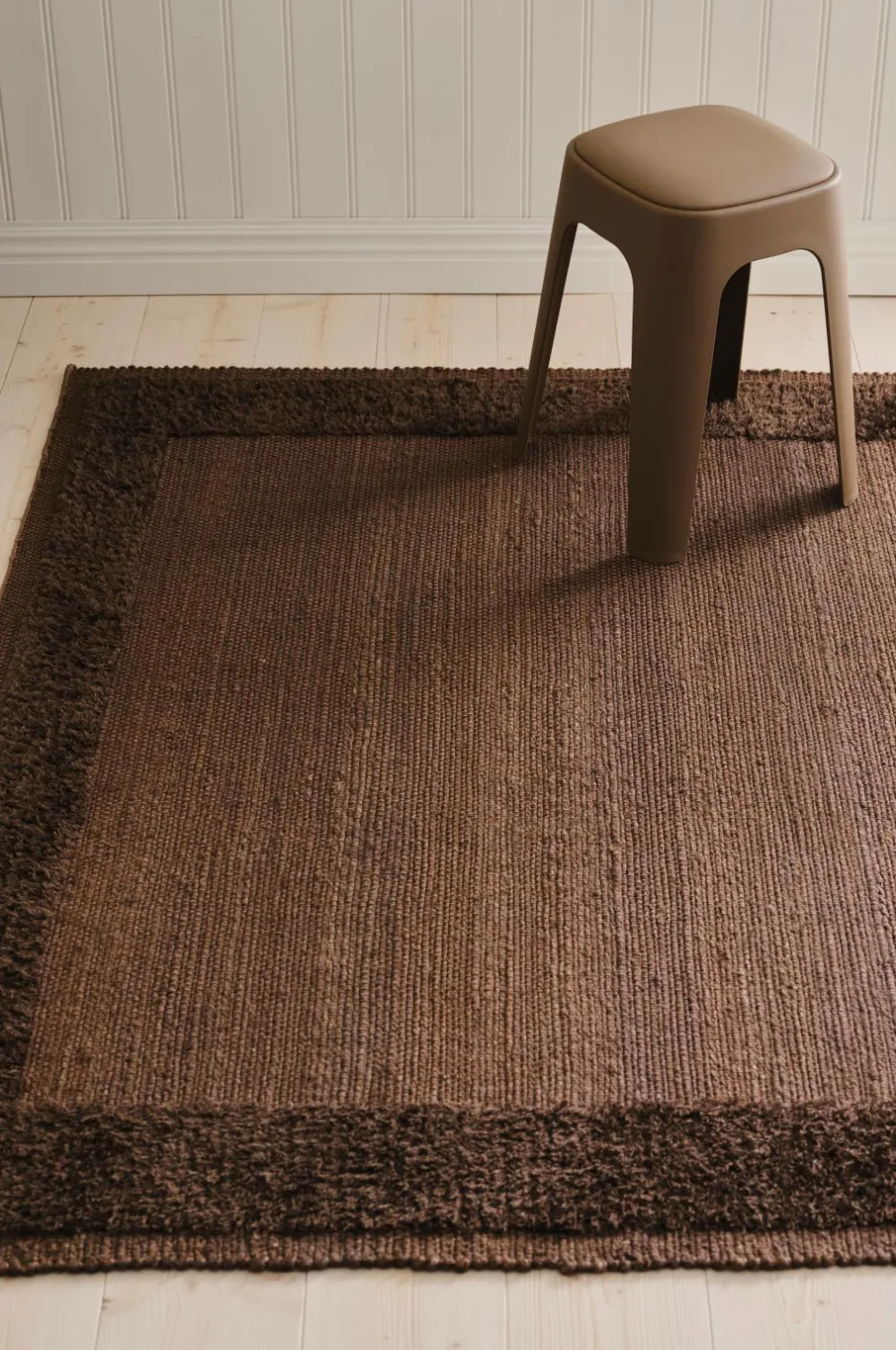 • Håndvævet jutetæppe med tuftet ramme i viskose