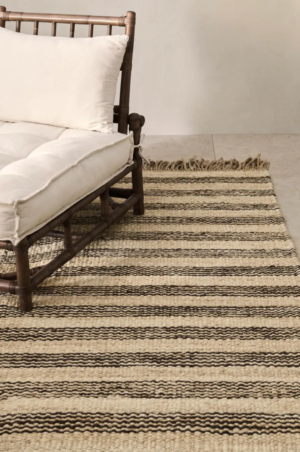 Vævet tæppe i 100% jute med frynser på kortsiderne. Trend af bomuld.