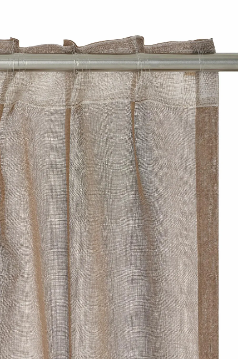 KIRA er et dejligt gennemsigtigt gardin med en smuk, lidt mere sparsom vævning. Lyset filtreres og falder blødt ind i rummet, og hvis du vil skærme for solens stråler eller begrænse gennemsigtigheden, kan du trække gardinet for og stadig få lyset ind. Gardinet har et let fald, og du kan kombinere det med et tungere mørklægningsgardin for at få en luksuriøs hotelfornemmelse. Det bløde farveskema passer godt til stoffets fornemmelse. KIRA-gardinet er fremstillet af certificeret genbrugspolyester. Længderne har påsyet, transparent multifunktionelt bånd i toppen, og det kan hænges op med fingerkroge, en kanal og en skjult bøjle.