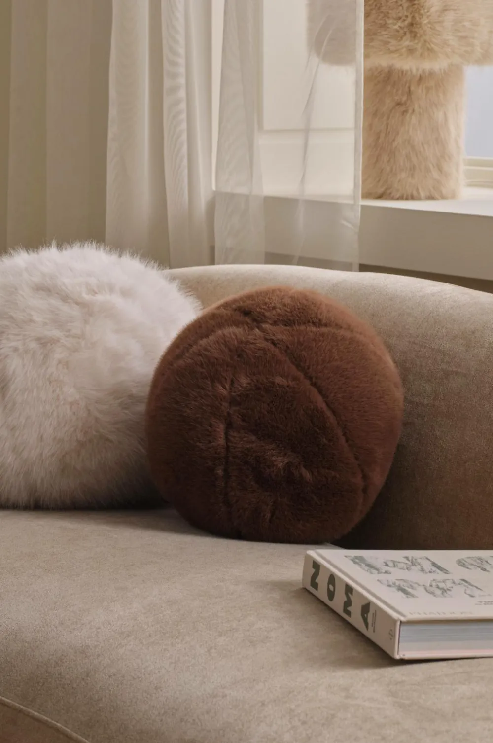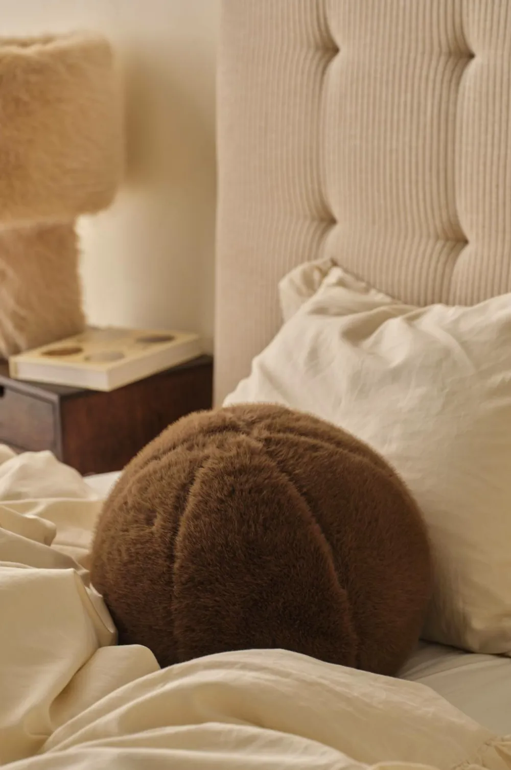 • Rund Kuglepude i blød Pels-imitation