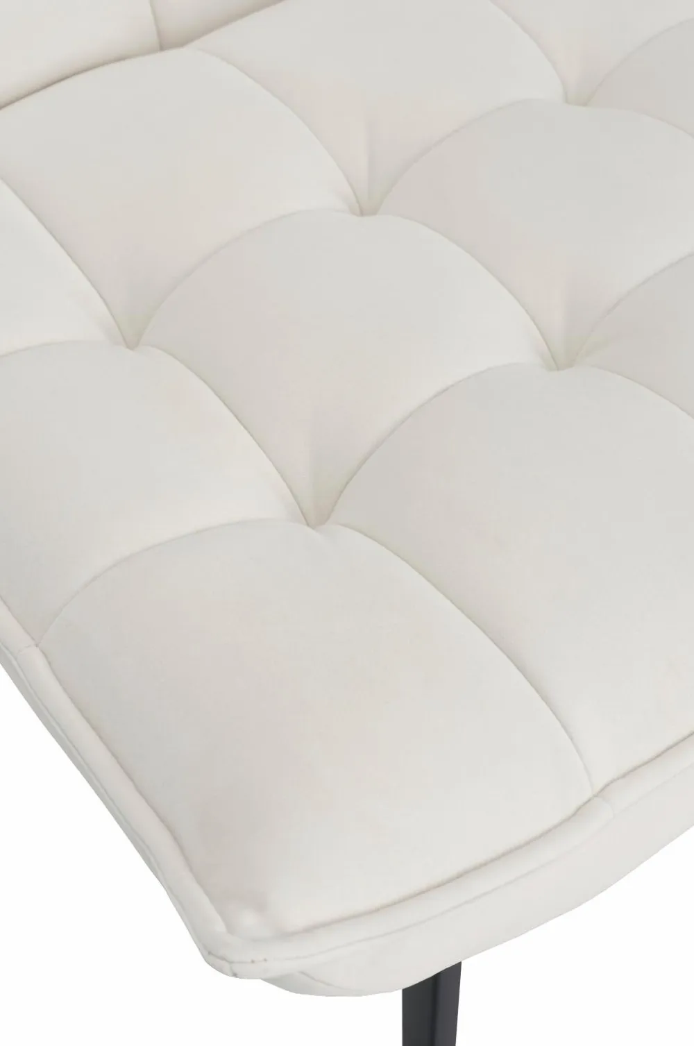 Lænestol med paspoleret kant rundt om. Indfældninger, der danner et dekorativt ternet mønster. Skumfyld. Ben af metal. Lettere samling.