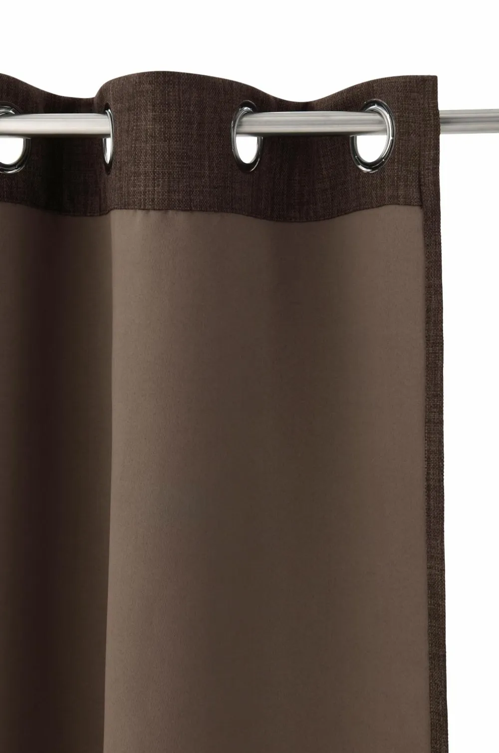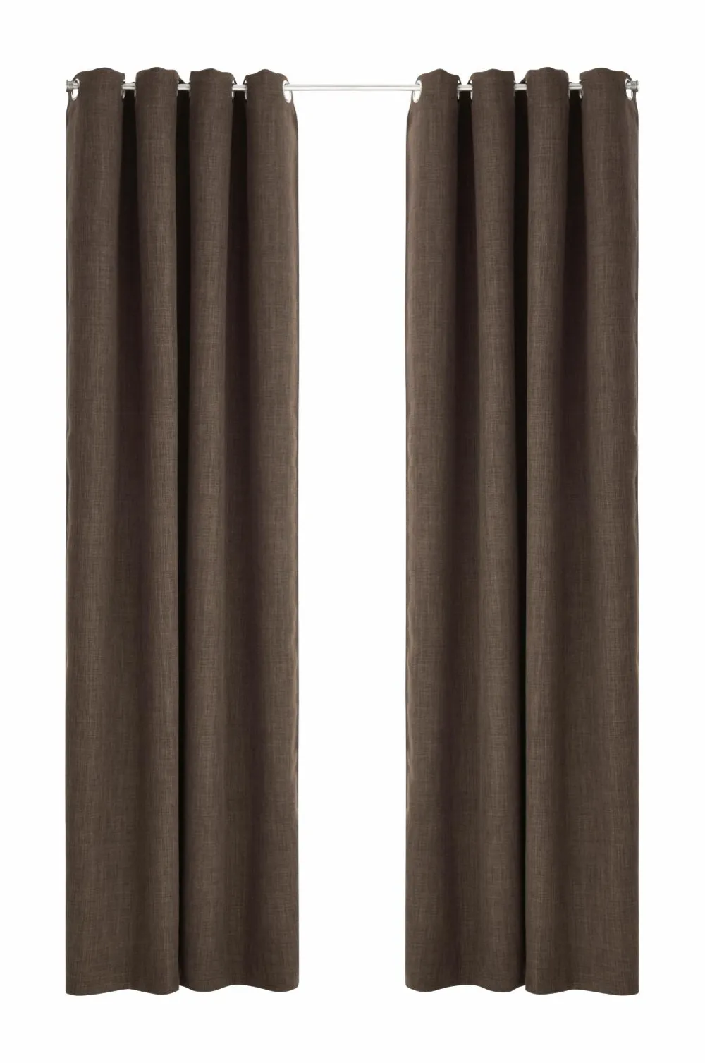 Mørklæggende gardin i hørlook med struktur og meleret effekt. Sejlringe i sølvfarvet metal. Et vævet mellemlag med indvævede sorte tråde gør, at gardinet lukker lyset ude. Matchende farve tone-i-tone på bagsiden. Bredde 140 cm. 2 længder: 220 og 250 cm. Stryges fugtige ved middelvarme på bagsiden.