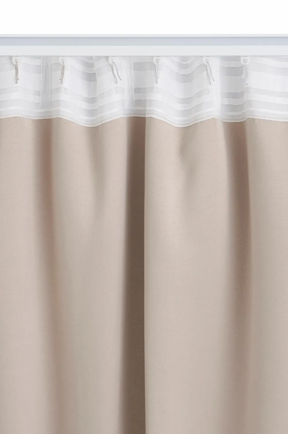 Mørklægningsgardin i twill med fin glans. Et vævet mellemlag med indvævede sorte tråde gør, at gardinet lukker lyset ude. Gardinet har multibånd, som gør at du kan trække det direkte på en gardinstang eller bruge ringe og nålkroge (ikke fingerkroge). Snoren i rynkebåndet gør, at du let kan skabe ensartede, flotte læg. Bredde 135 cm. Tre længder: 220, 250 og 300 cm. Sælges i 1-pak.