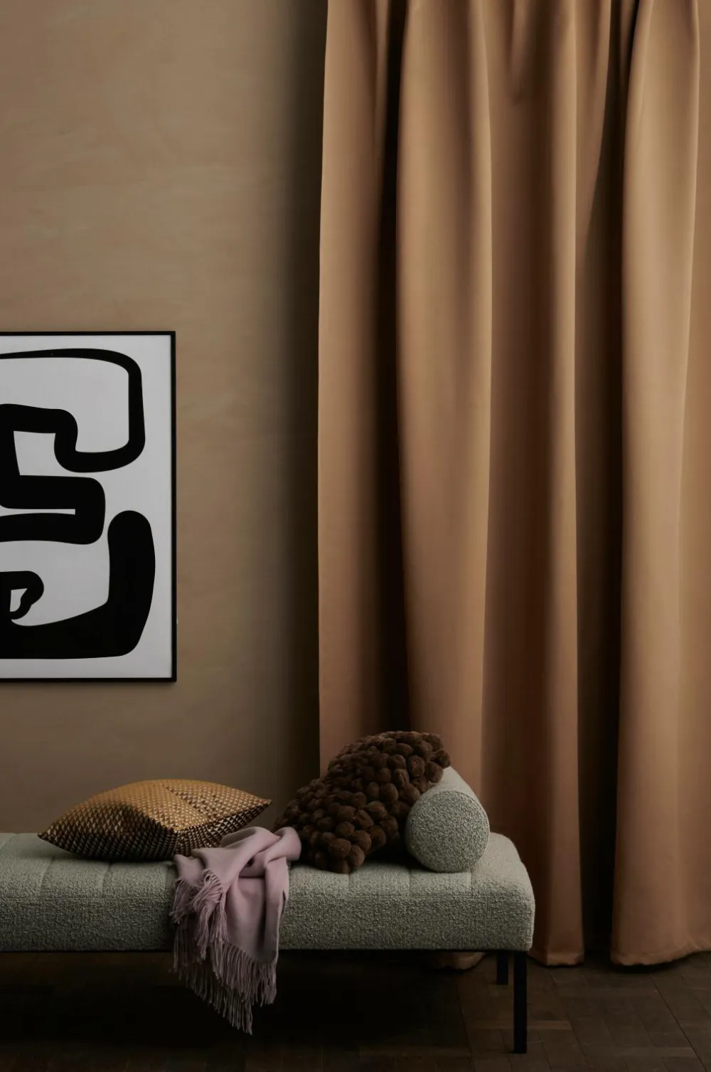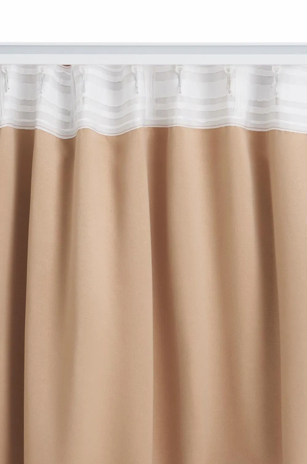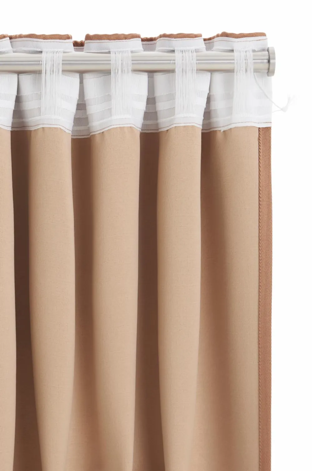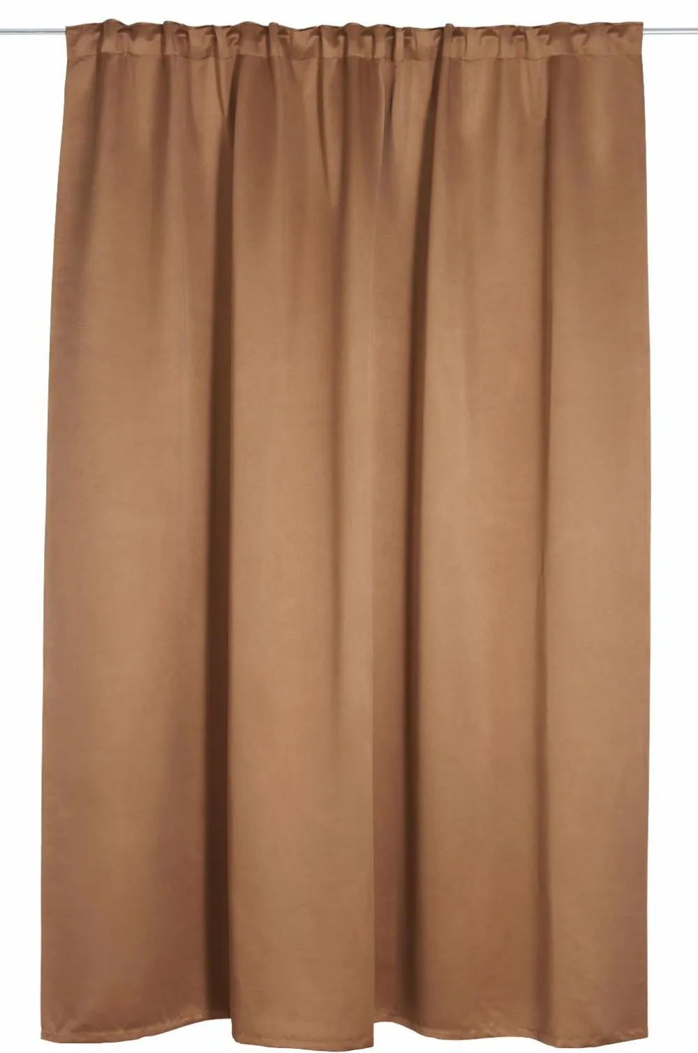Mørklægningsgardin i twill med fin glans. Et vævet mellemlag med indvævede sorte tråde gør, at gardinet lukker lyset ude. Gardinet har multibånd, som gør at du kan trække det direkte på en gardinstang eller bruge ringe og nålkroge (ikke fingerkroge). Snoren i rynkebåndet gør, at du let kan skabe ensartede, flotte læg. Bredde 270 cm. Længde 300 cm. Sælges i 1-pak.