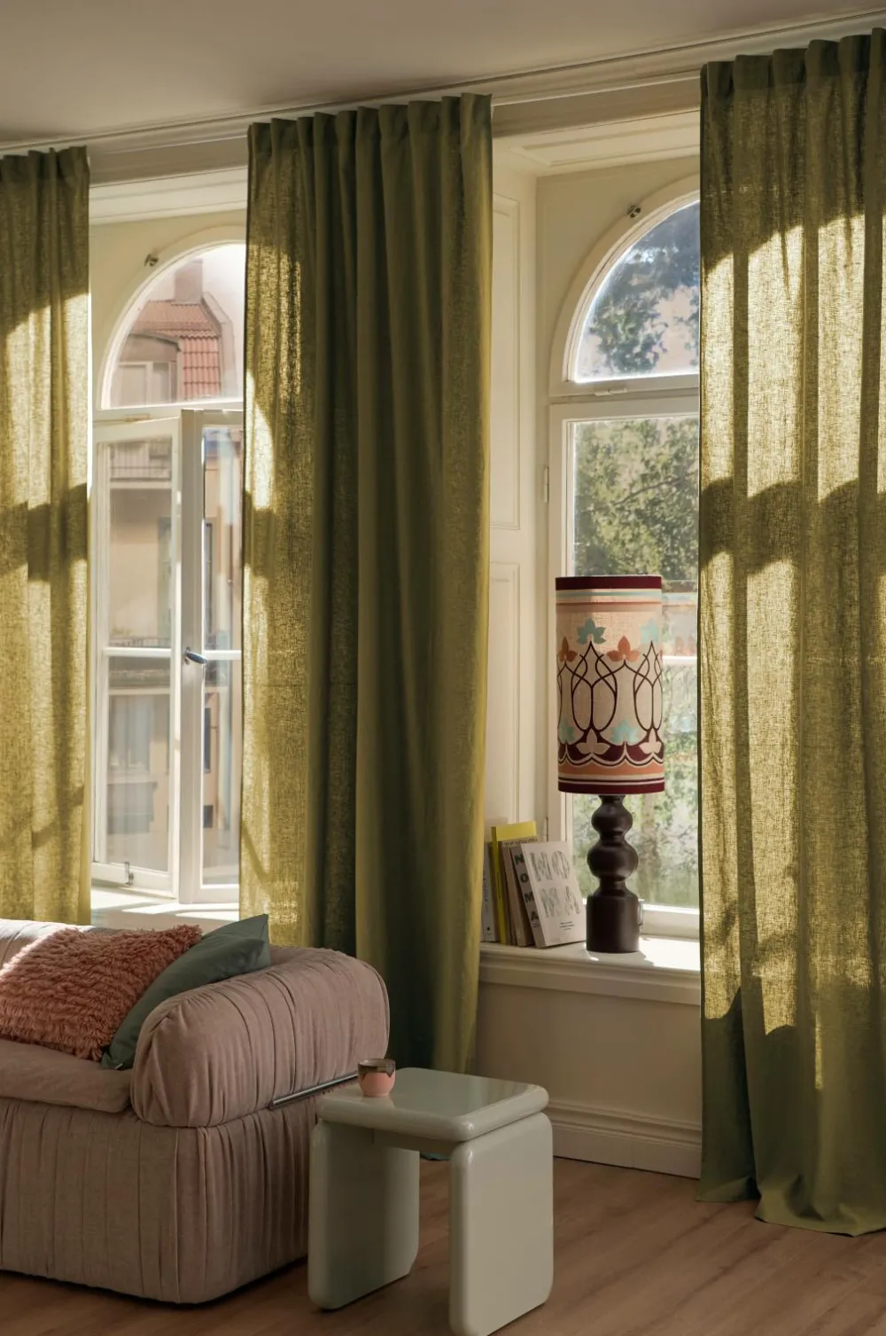• To ensfarvede Multibåndsgardiner i hørblanding